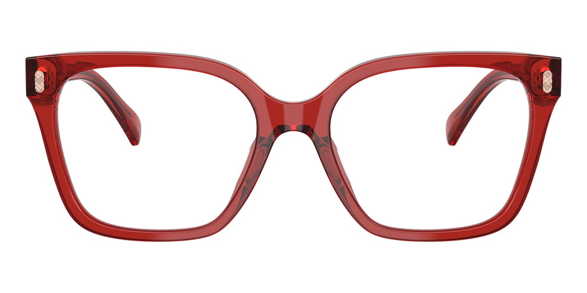 This square Ralph by Ralph Lauren optical comes in a shiny transparent burgundy frame.