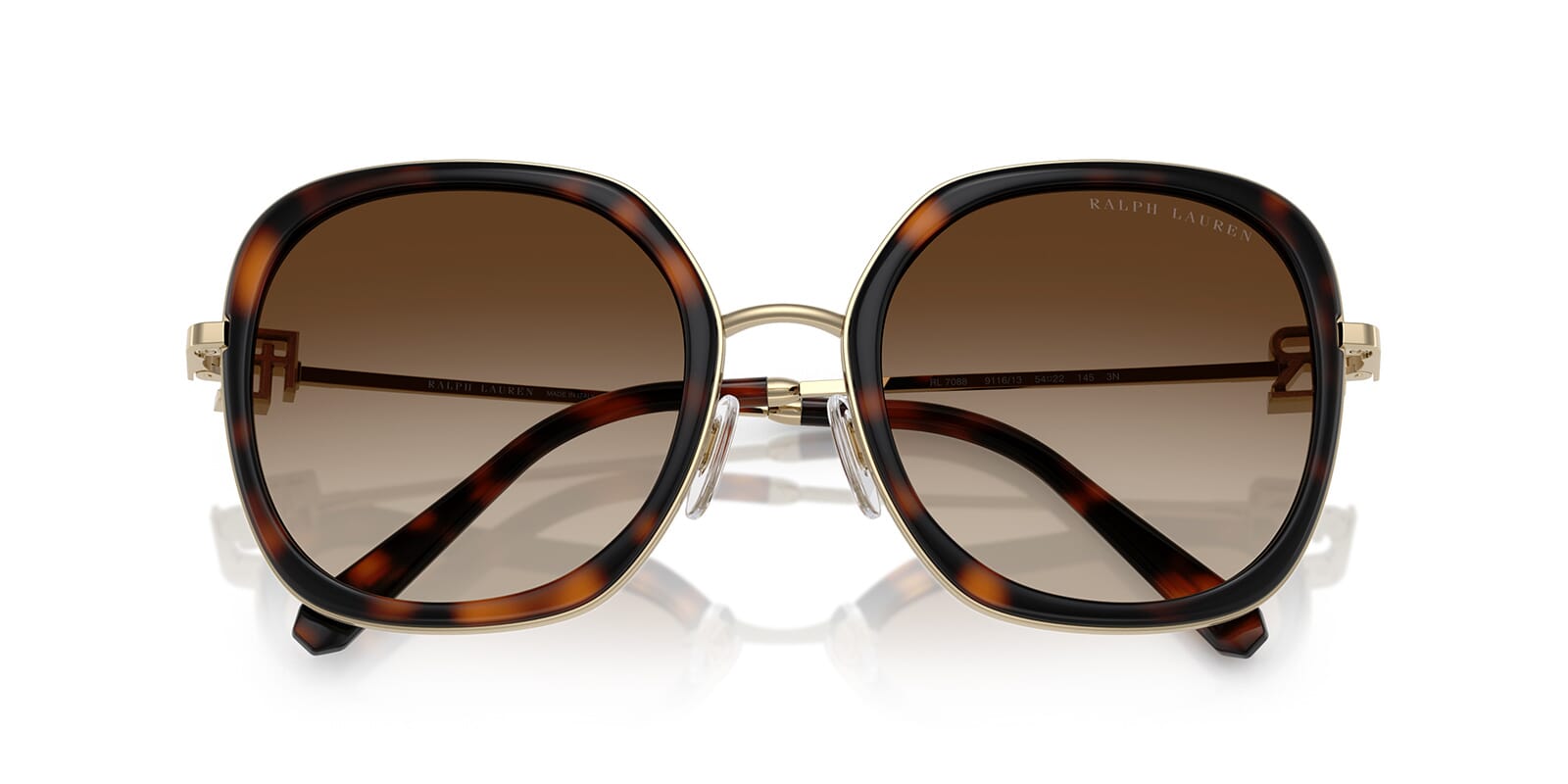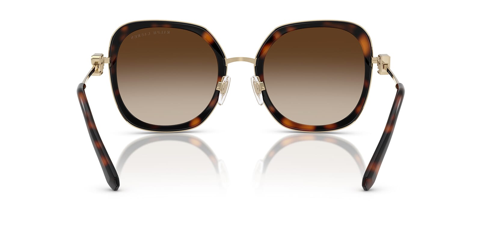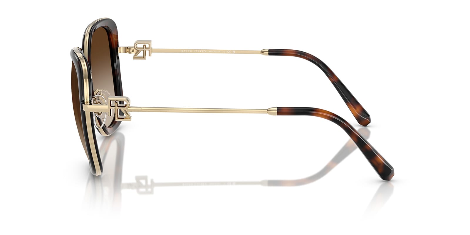 This butterfly Ralph Lauren sunglass comes in a dark havana frame with brown gradient lenses.