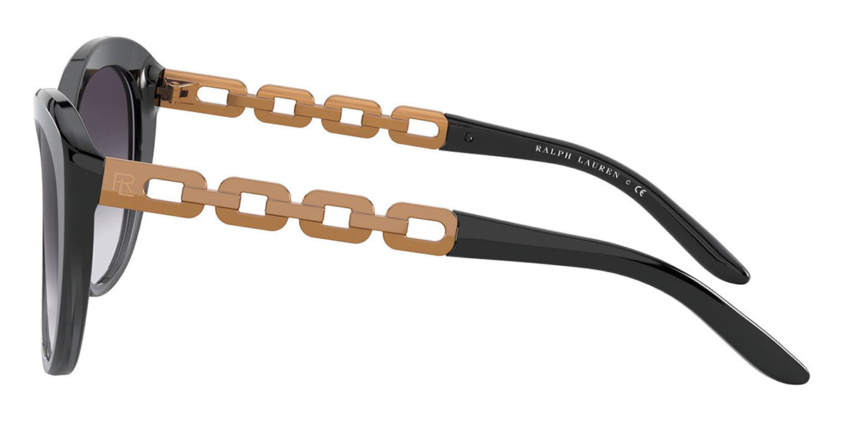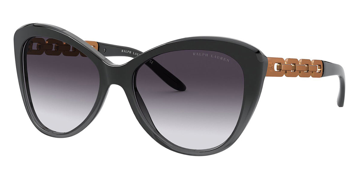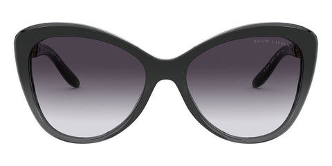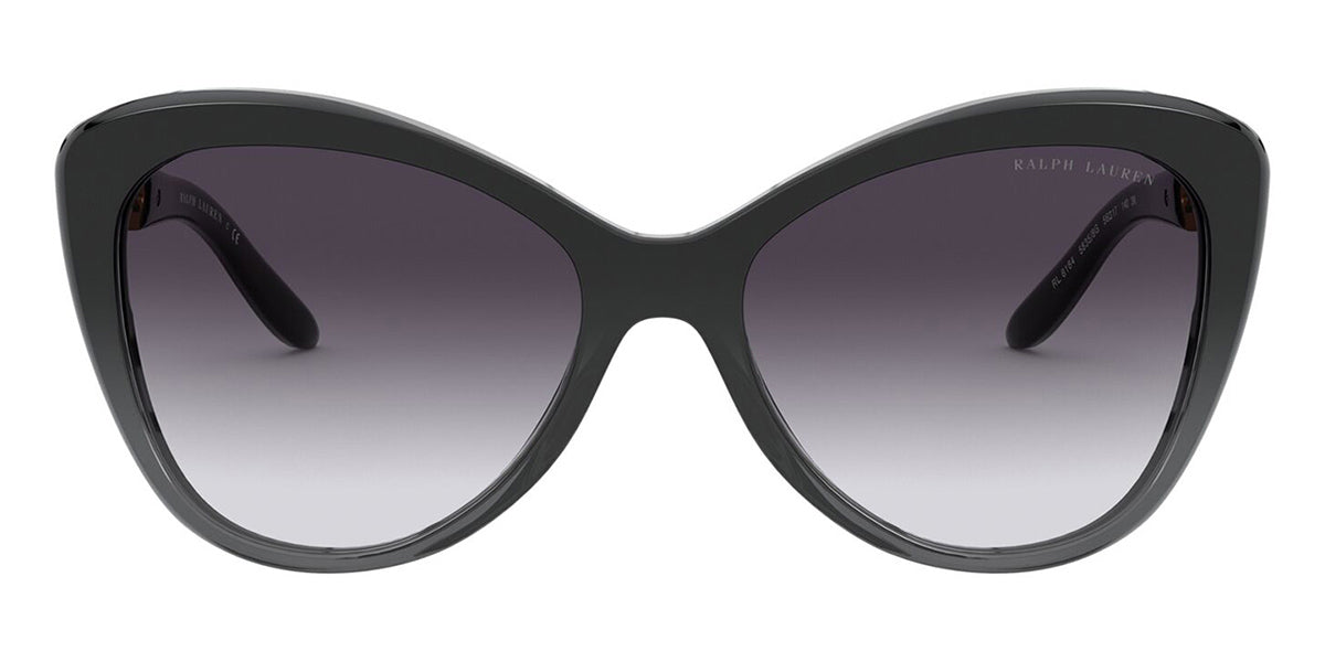 This butterfly Ralph Lauren sunglass comes in a black gradient grey frame with grey gradient lenses.