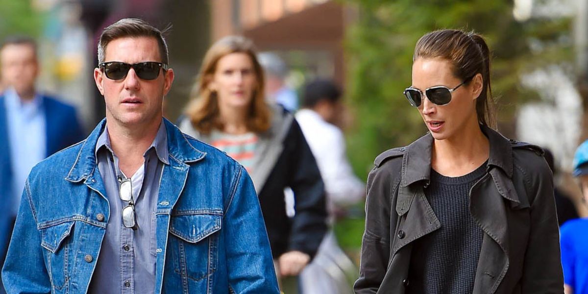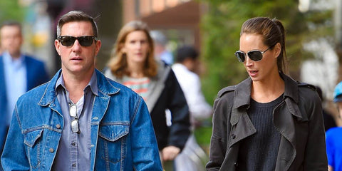 Actor Edward Burns, pictured with supermodel wife Christy Turlington, was seen wearing black Ray-Ban New Wayfarer 2132 901/58 Polarised sunglasses