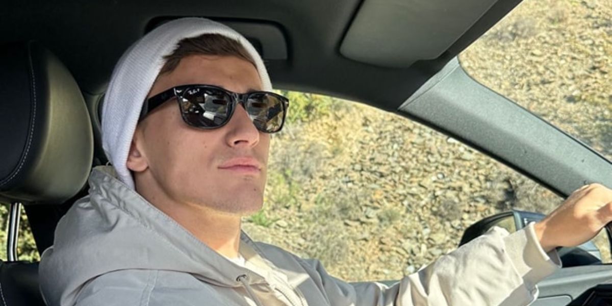MrBeast wears Ray-Ban New Wayfarer 2132 901/58 Polarised sunglasses in a social media post