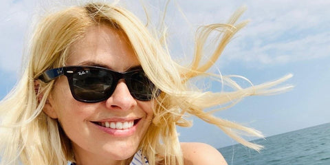 British television presenter Holly Willoughby was seen wearing Ray-Ban New Wayfarer 2132 901/58 Polarised sunglasses