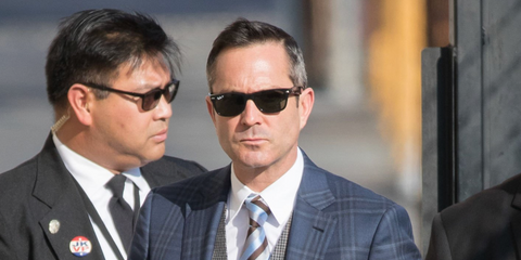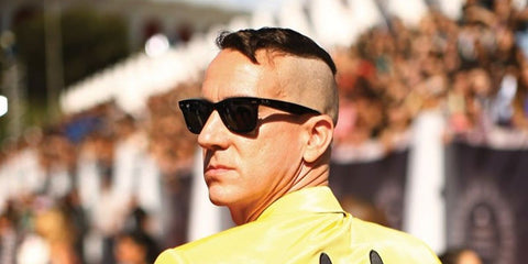 Jeremy Scott was seen wearing the iconic black Ray-Ban New Wayfarer 2132 901/58 sunglasses with Polarised lenses