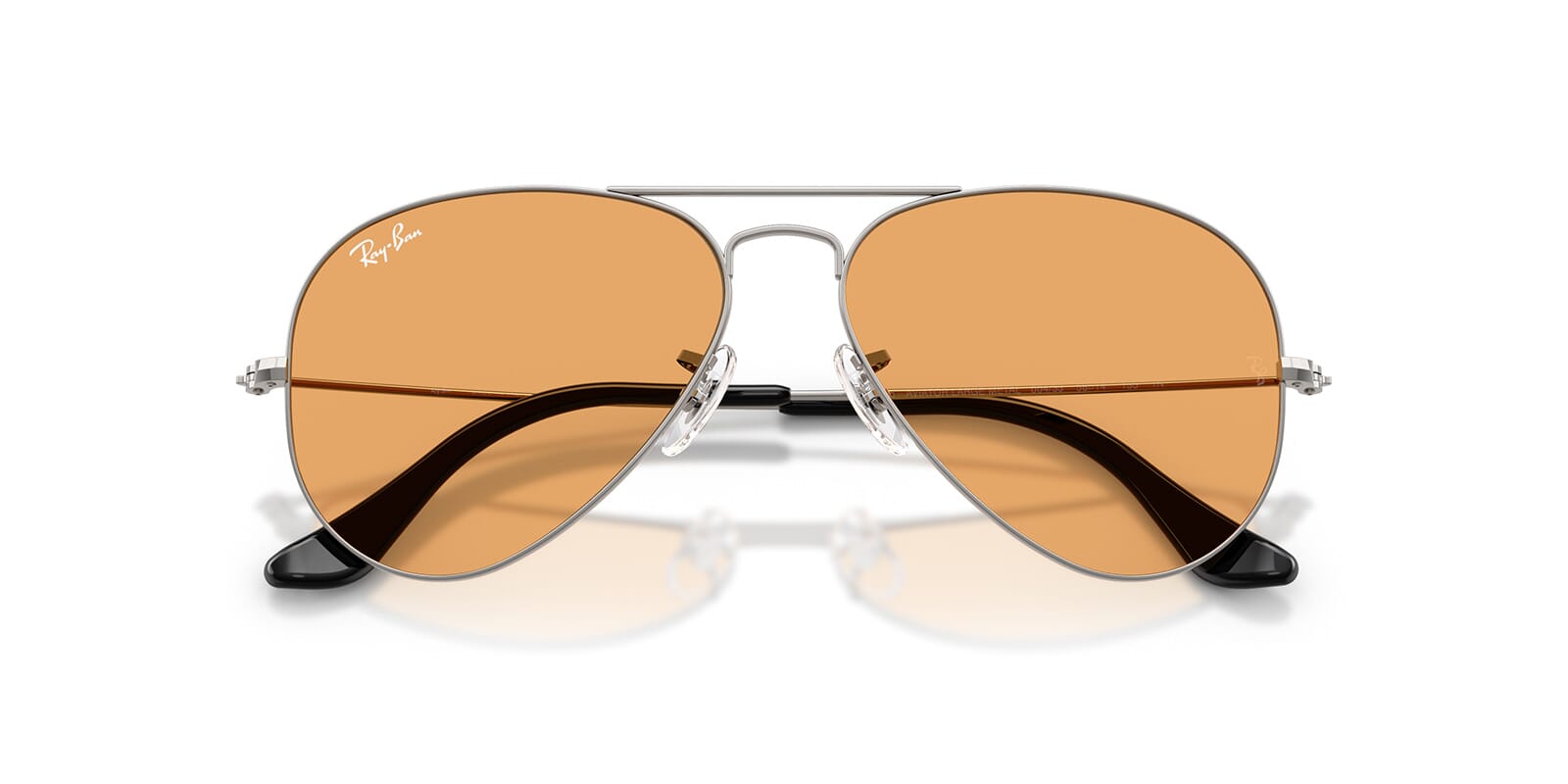 This aviator Ray-Ban sunglass comes in a gunmetal frame with orange lenses.