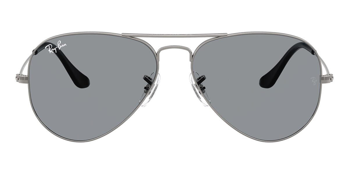 This aviator Ray-Ban sunglass comes in a gunmetal frame with grey lenses.