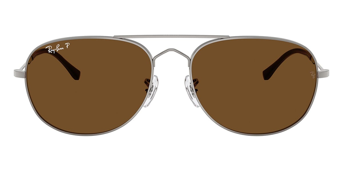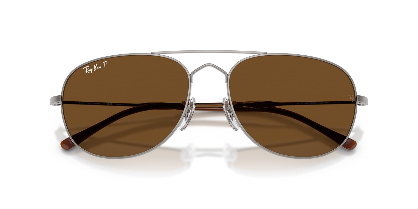 This round Ray-Ban sunglass comes in a gunmetal frame with brown polarised lenses.