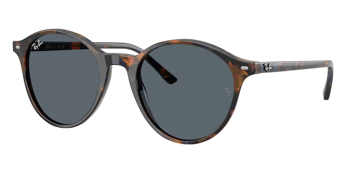 This round Ray-Ban sunglass comes in a havana yellow and blue frame with blue lenses.