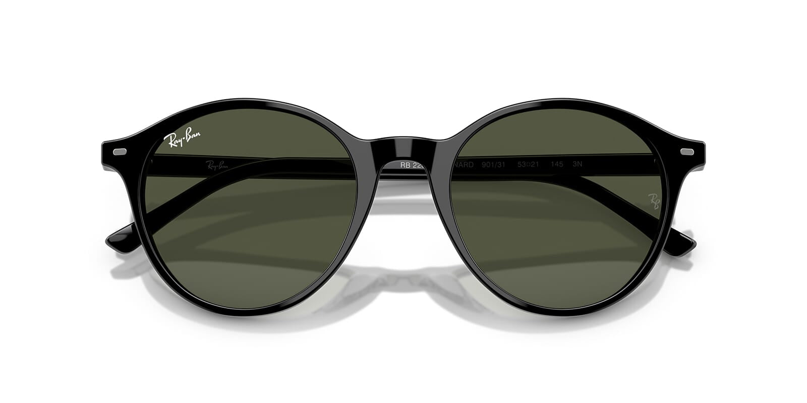 This round Ray-Ban sunglass comes in a black frame with g-15 green lenses.
