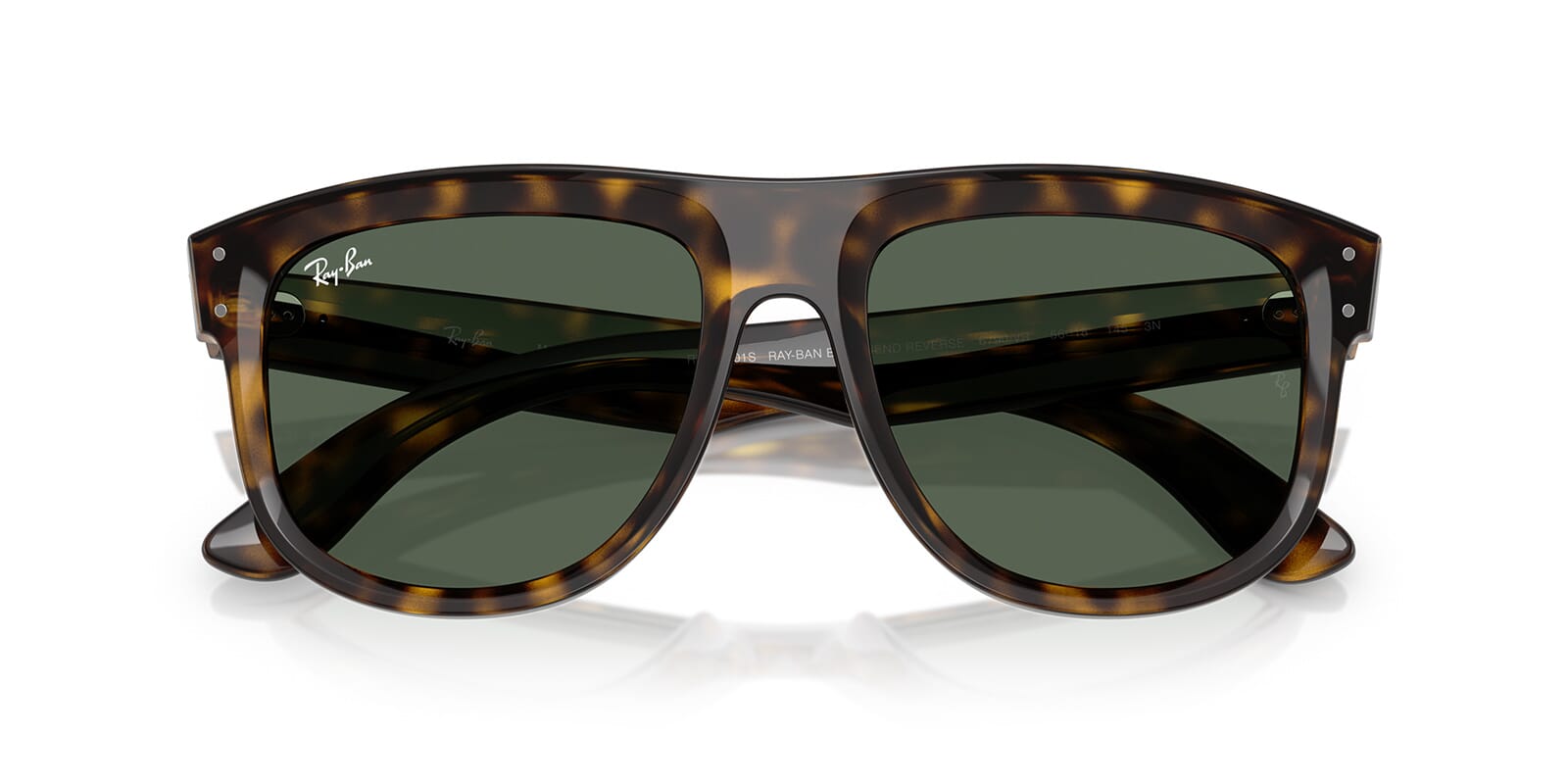 This square Ray-Ban sunglass comes in a dark havana frame with dark green lenses.