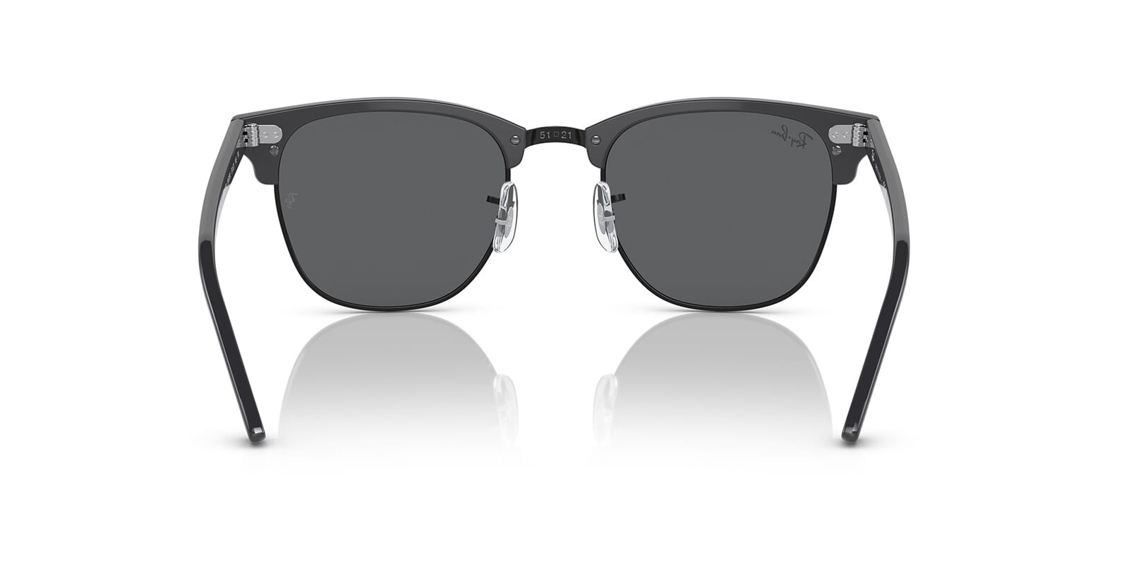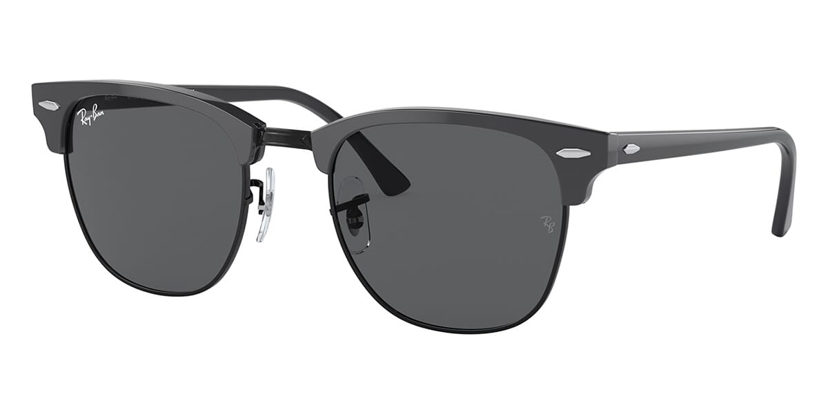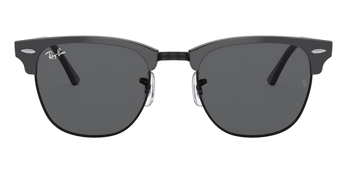 This square Ray-Ban sunglass comes in a grey on black frame with dark grey lenses.