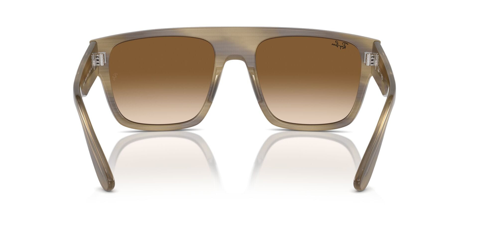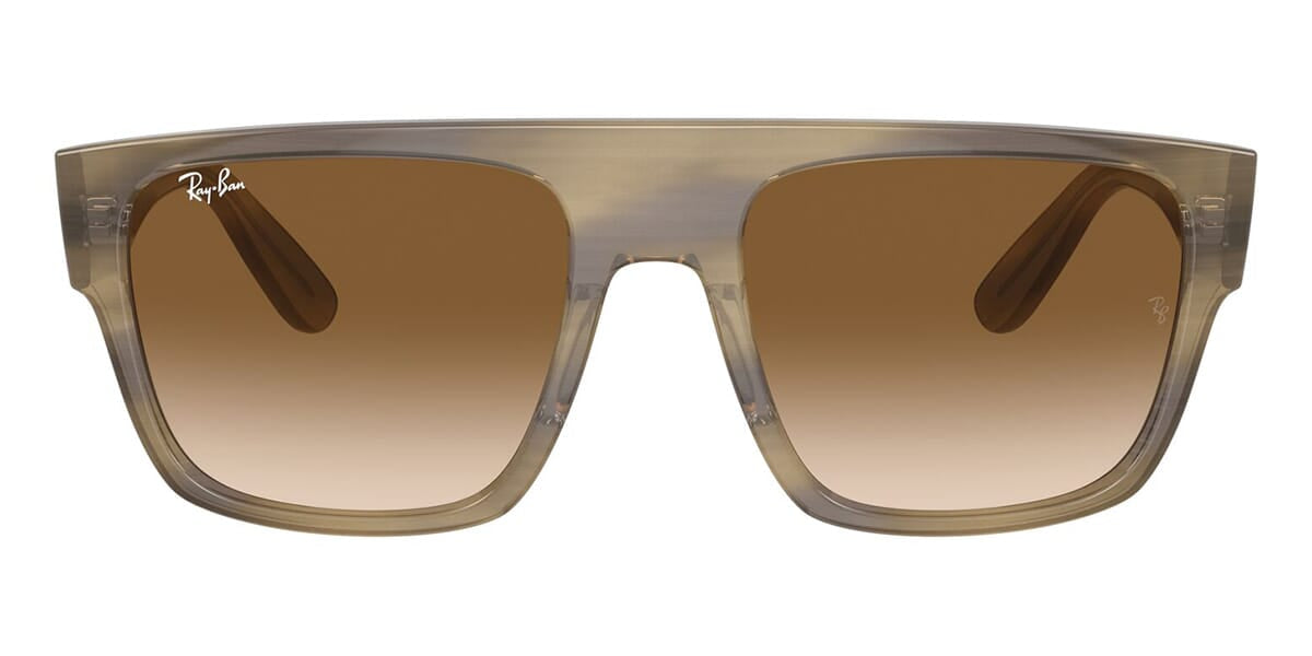 This square Ray-Ban sunglass comes in a striped green frame with brown gradient lenses.