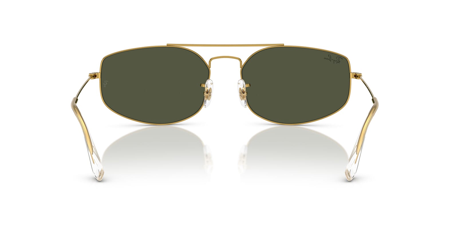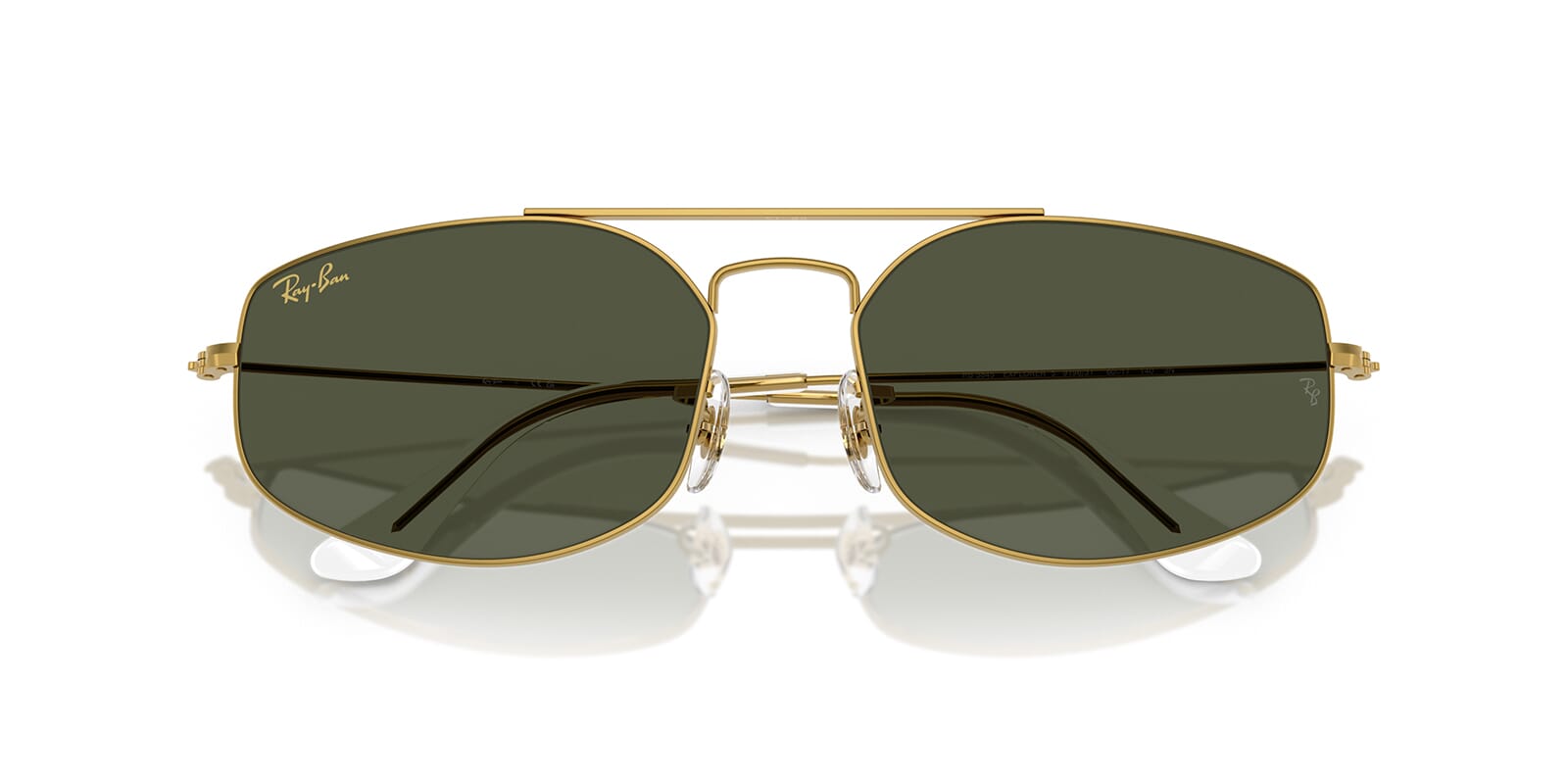This rectangular Ray-Ban sunglass comes in a legend gold frame with g-15 green lenses.