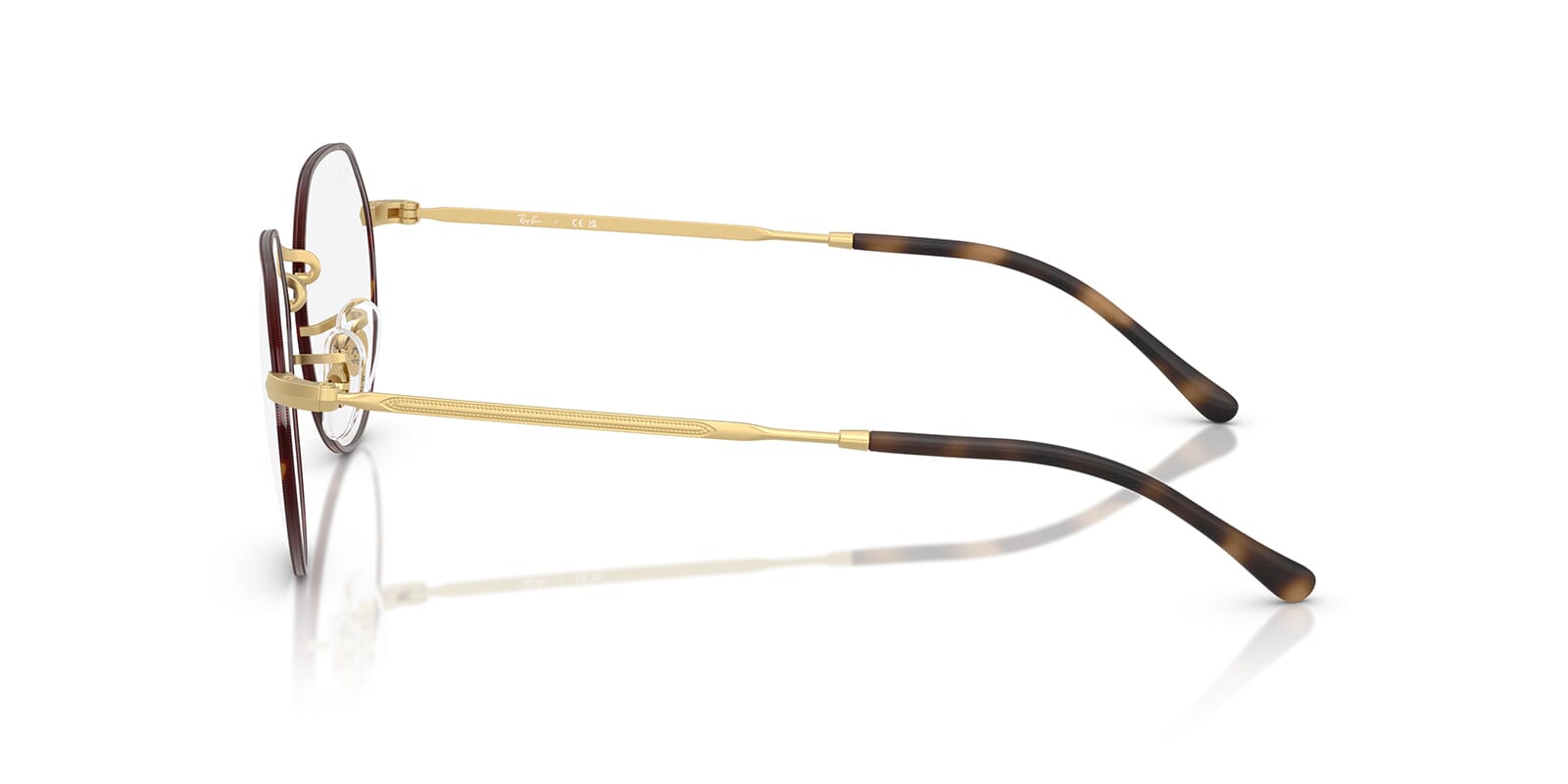 This round Ray-Ban optical comes in a matte havana on matte arista gold frame.