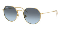 This round Ray-Ban sunglass comes in a rose gold frame with dark violet gradient lenses.