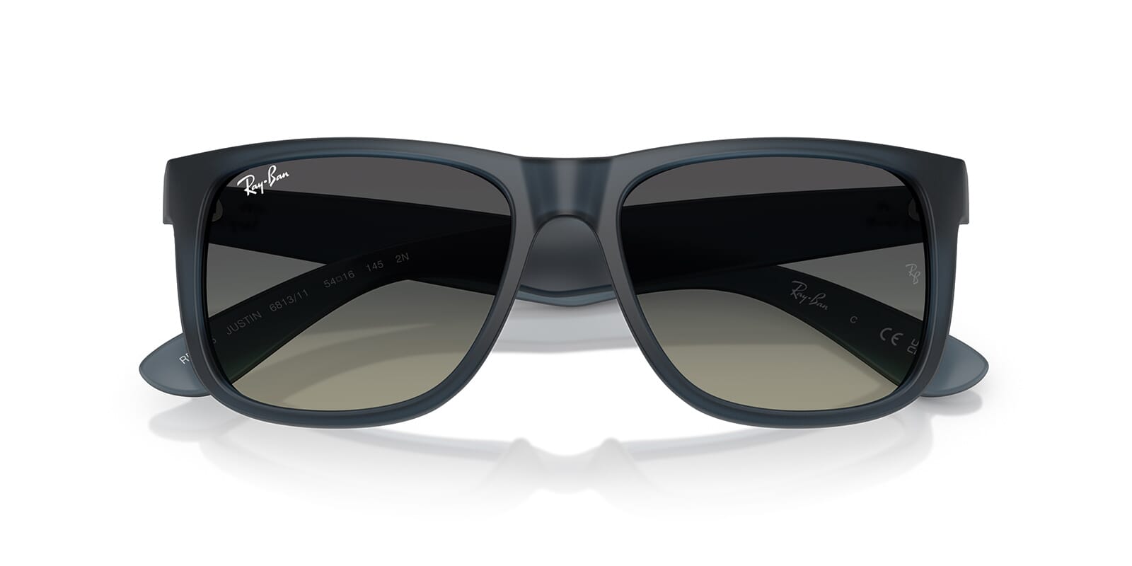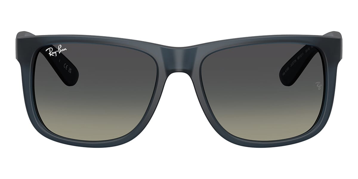 This square Ray-Ban sunglass comes in a rubber blue frame with grey gradient lenses.