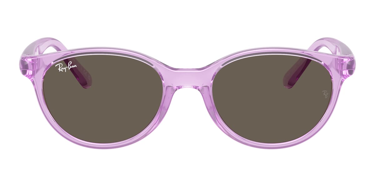 This round Ray-Ban sunglass comes in a transparent violet frame with brown lenses.