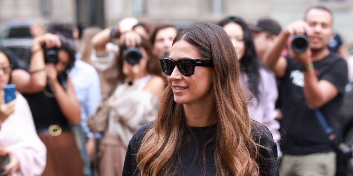 Italian model Paola Turani was seen wearing black Ray-Ban Mega Wayfarer RB 0840S 901/31 sunglasses at the Ermanno Scervino Spring/Summer 2025 fashion show during Milan Fashion Week. Shop online now on Pretavoir