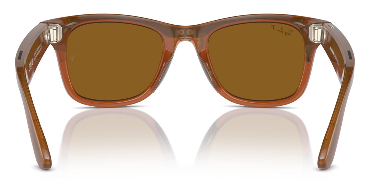 This wayfarer Ray-Ban sunglass comes in a shiny caramel frame with brown polarised lenses.