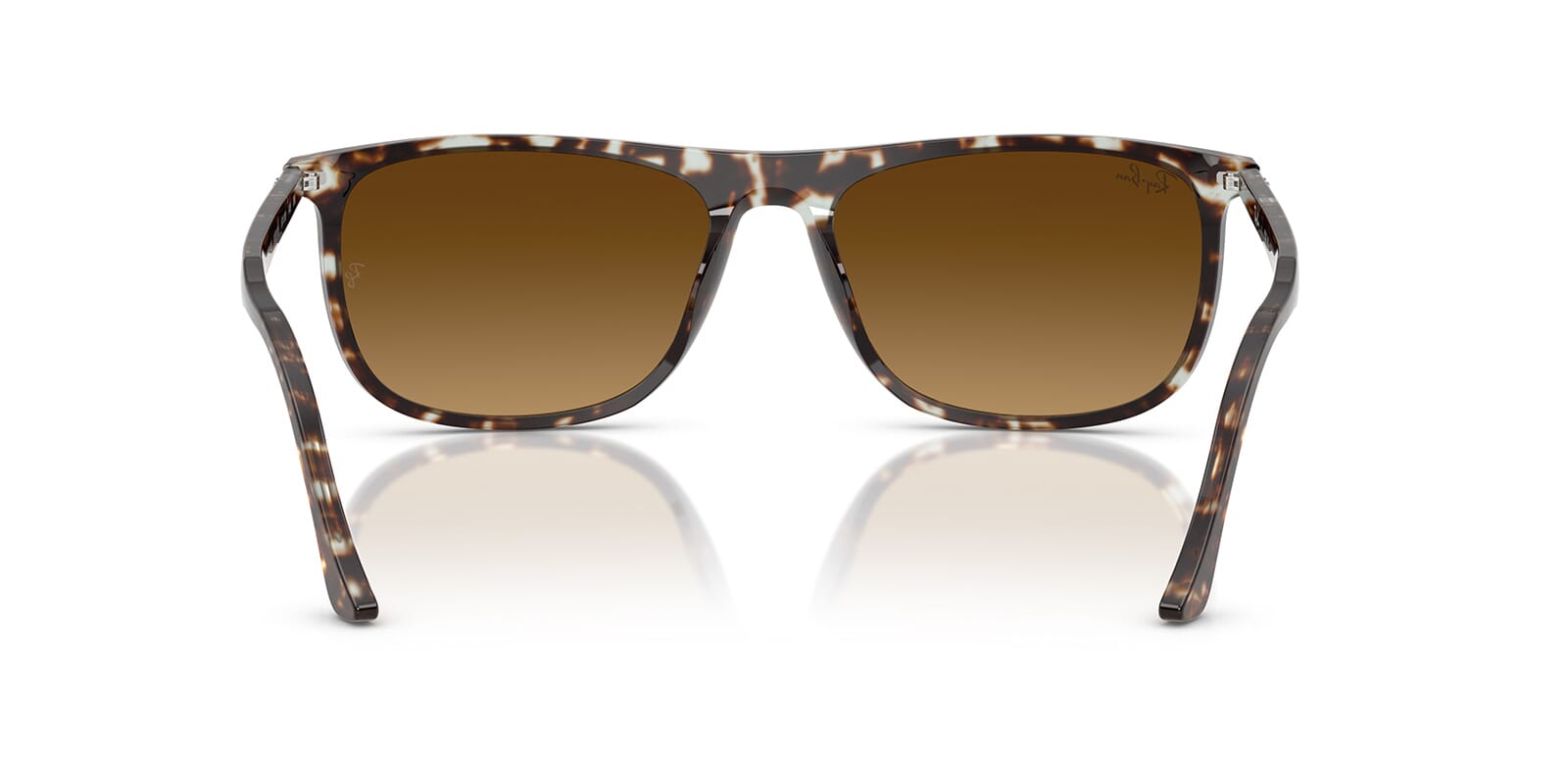 This rectangular Ray-Ban sunglass comes in a havana yellow tortoise shell frame with brown gradient lenses.