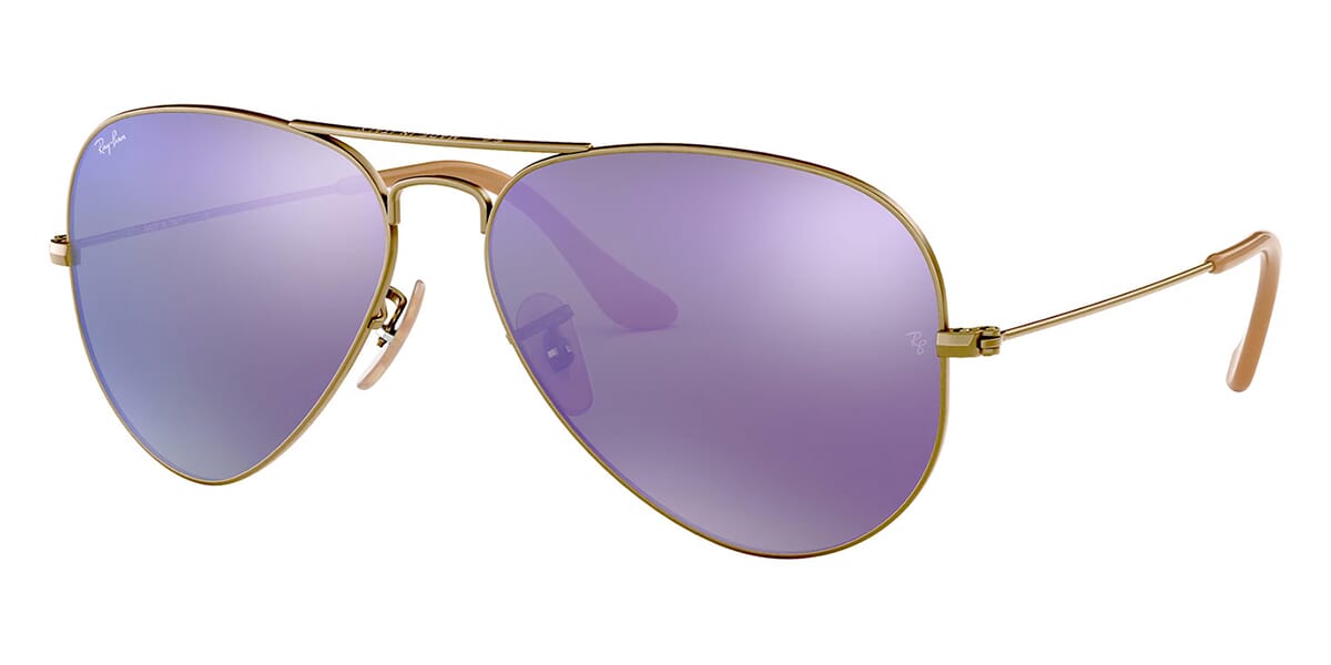 This aviator Ray-Ban sunglass comes in a bronze copper frame with green with violet mirror lenses.