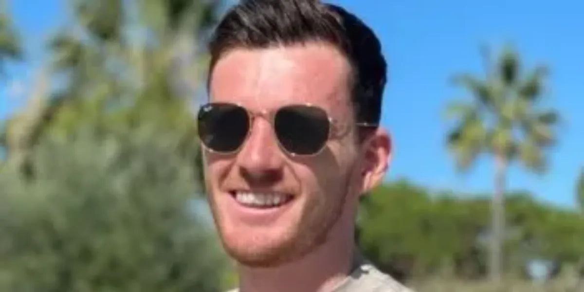 Scottish footballer Andy Robertson was seen wearing Ray-Ban RB 3548N 001 Hexagonal Gold With Flat Lenses sunglasses in 2021. Shop online now on Pretavoir