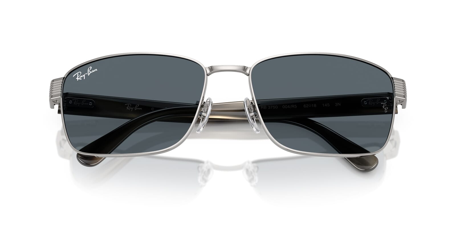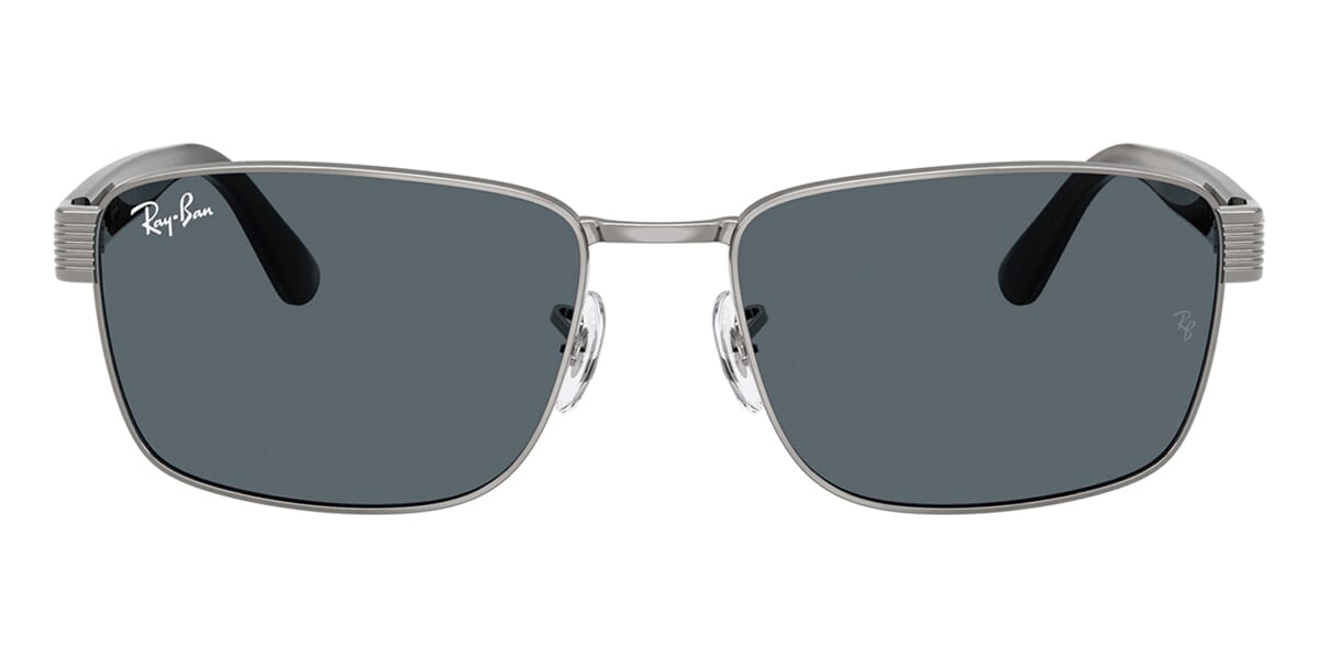 This square Ray-Ban sunglass comes in a gunmetal frame with blue lenses.