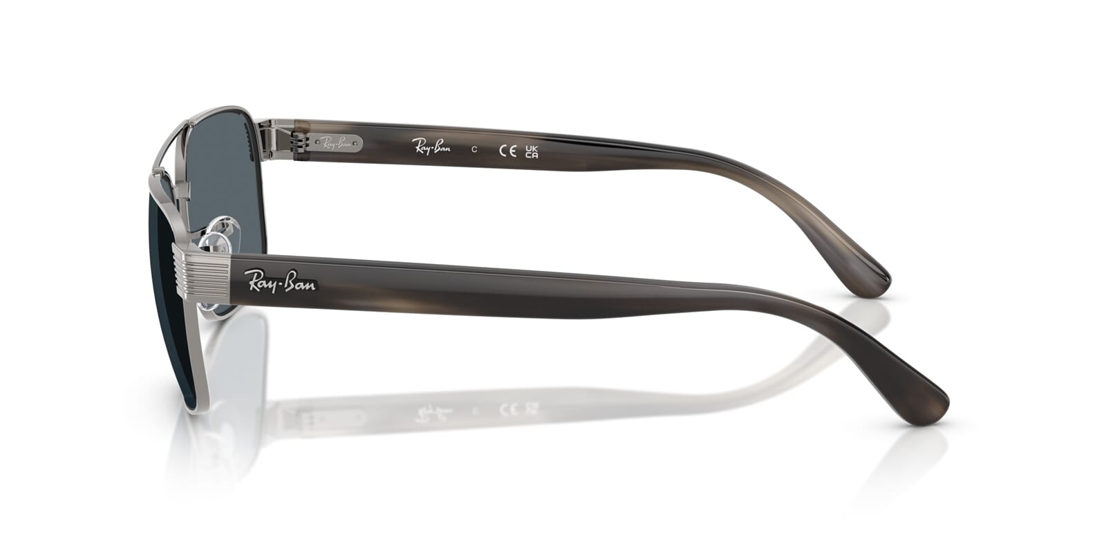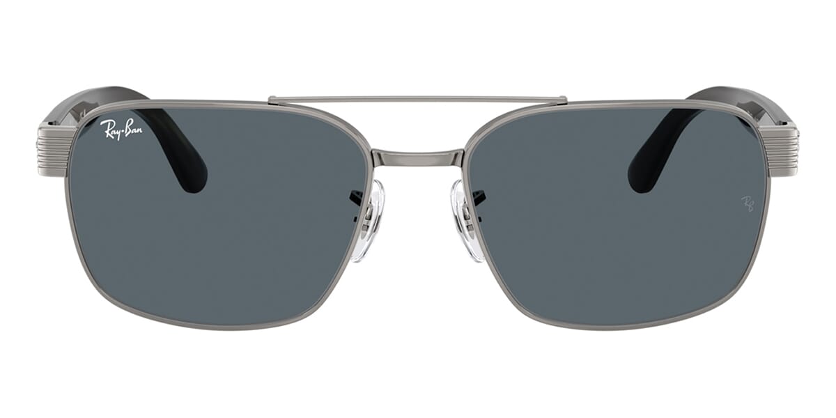 This square Ray-Ban sunglass comes in a gunmetal frame with blue lenses.