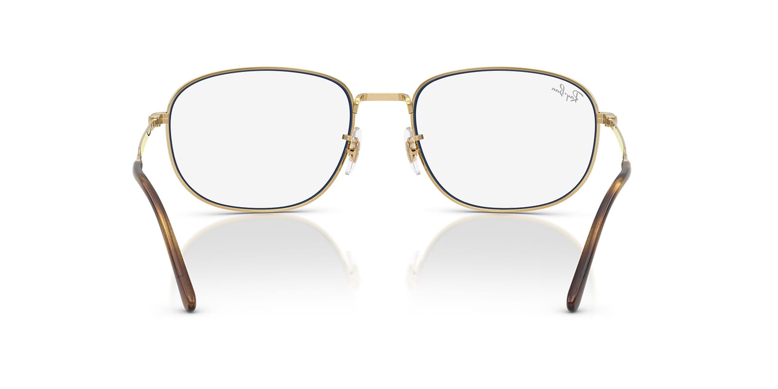 This square Ray-Ban sunglass comes in a arista gold frame with sapphire to clear gradient lenses.