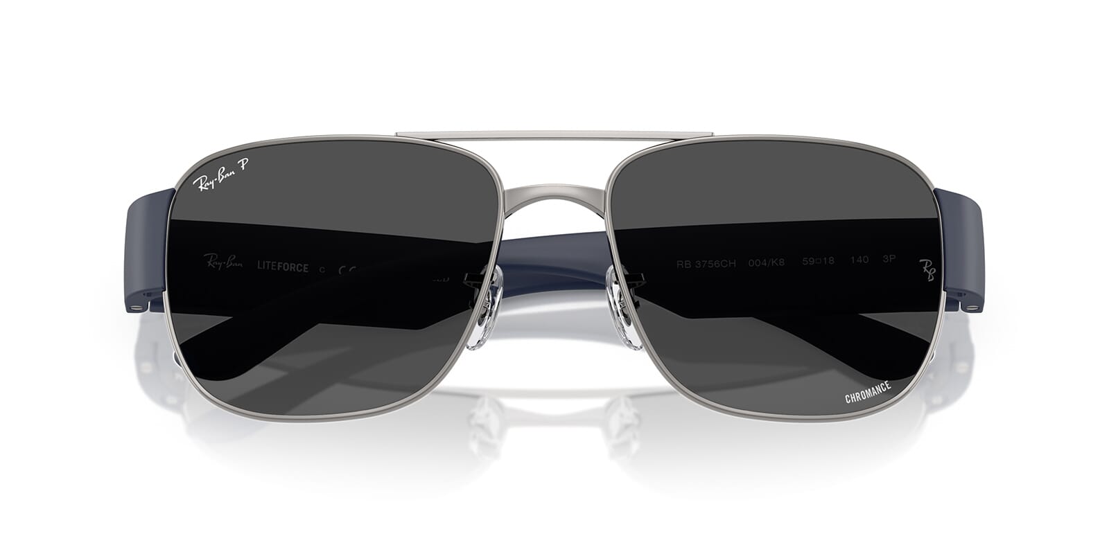 This square Ray-Ban sunglass comes in a gunmetal frame with dark grey polarised lenses.