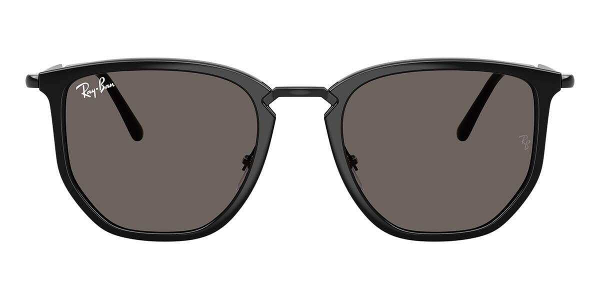 This square Ray-Ban sunglass comes in a black frame with dark grey lenses.