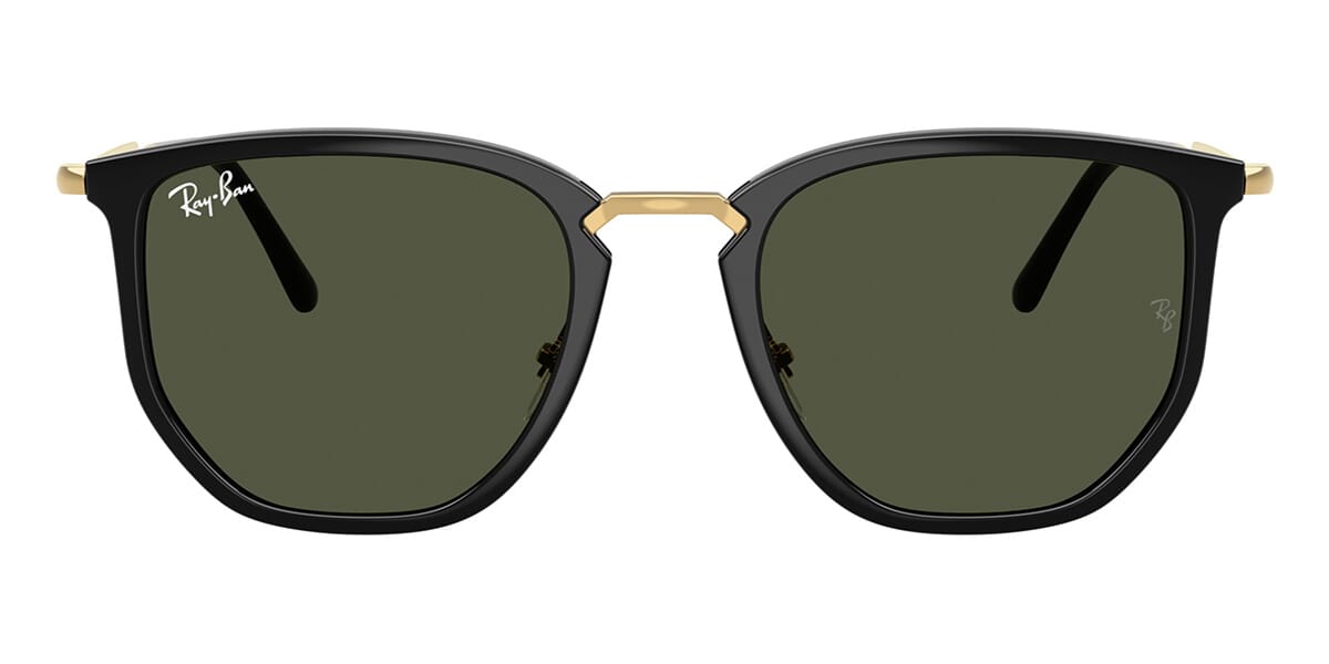 This square Ray-Ban sunglass comes in a black frame with green lenses.