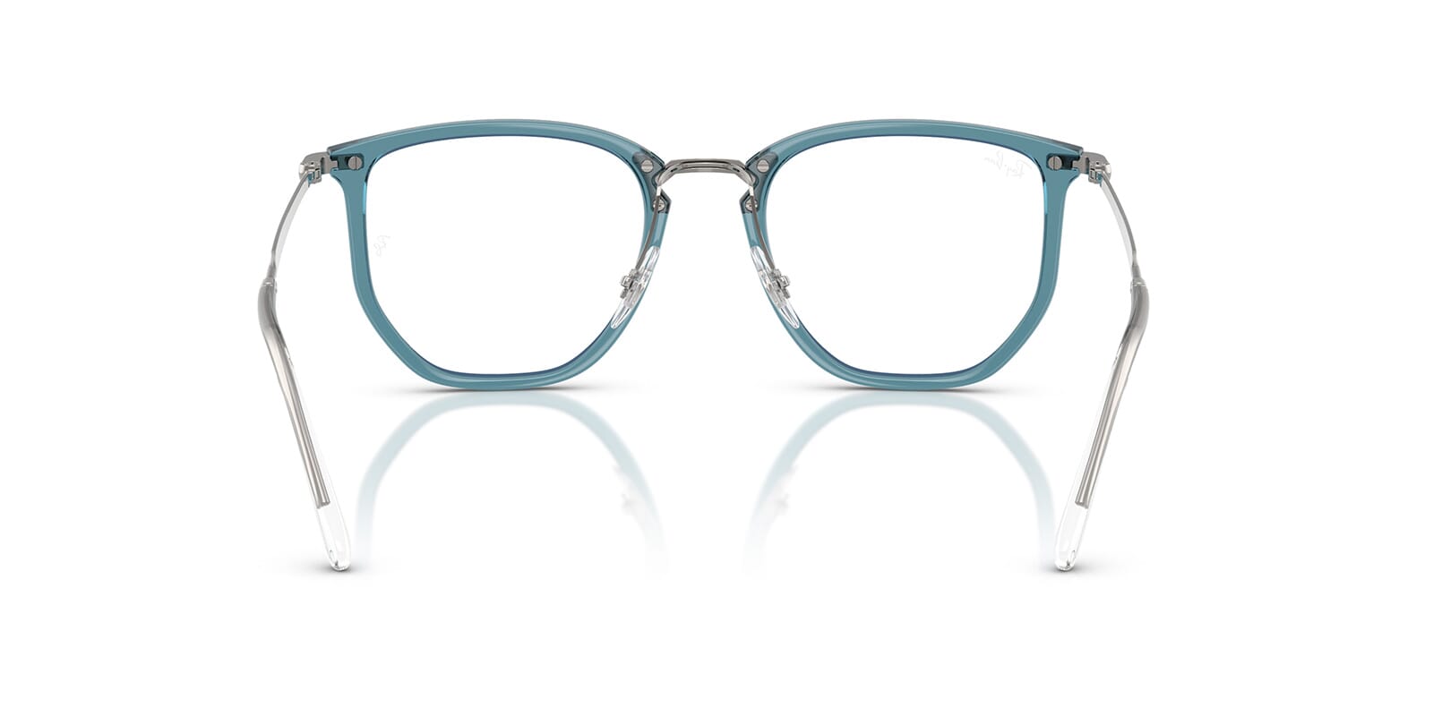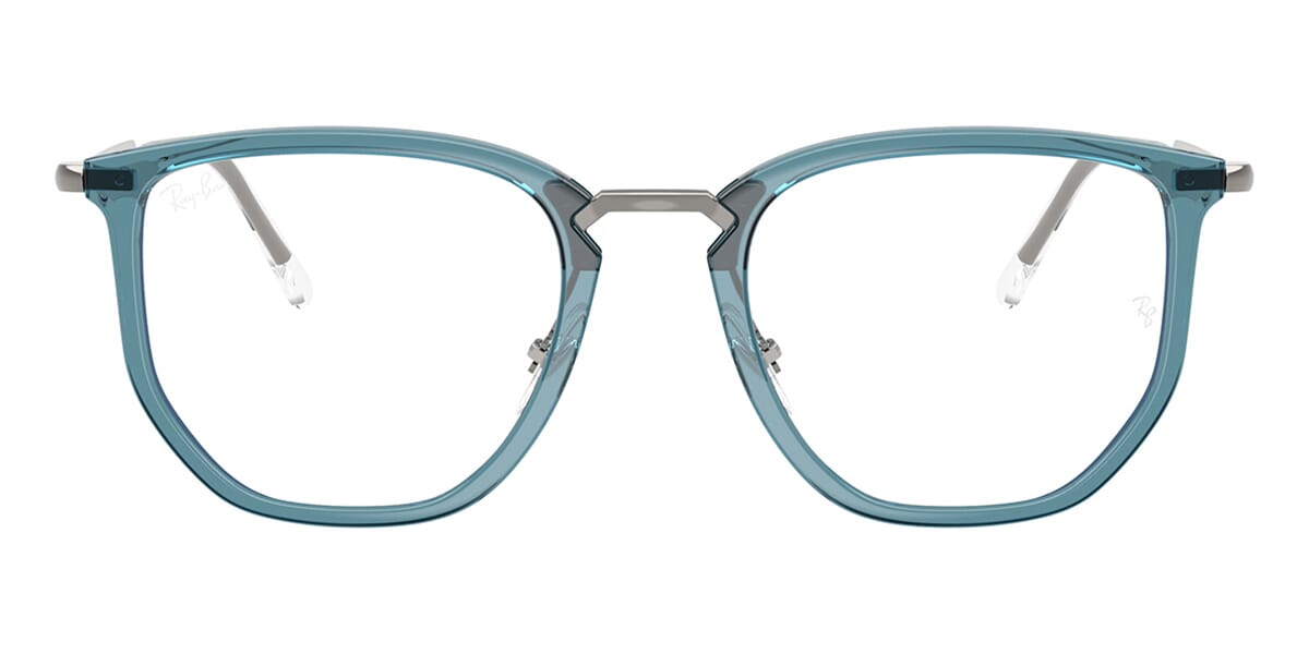 This square Ray-Ban optical comes in a blue crystal frame.
