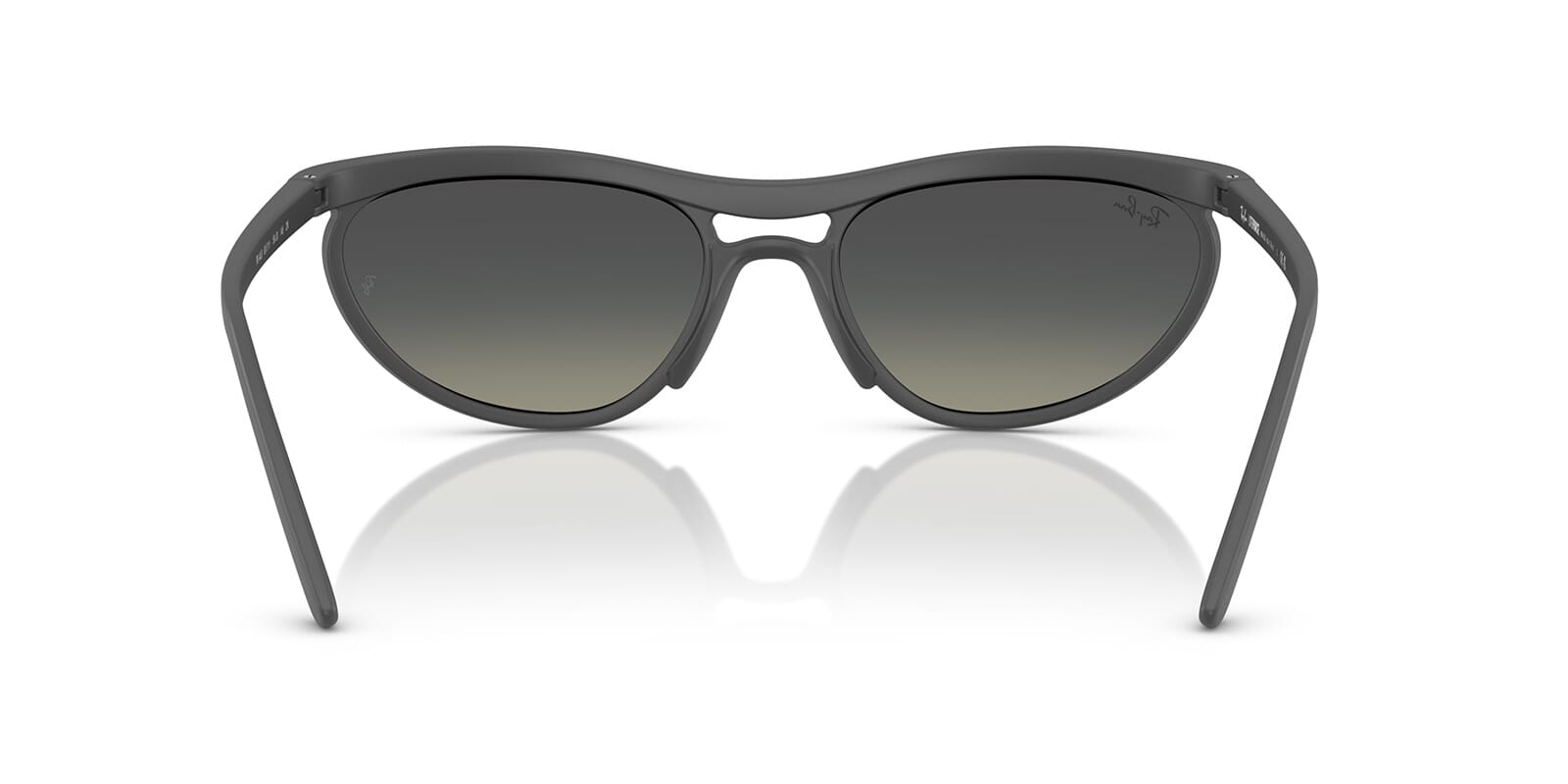 This cat eye Ray-Ban sunglass comes in a sand grey frame with grey gradient lenses.