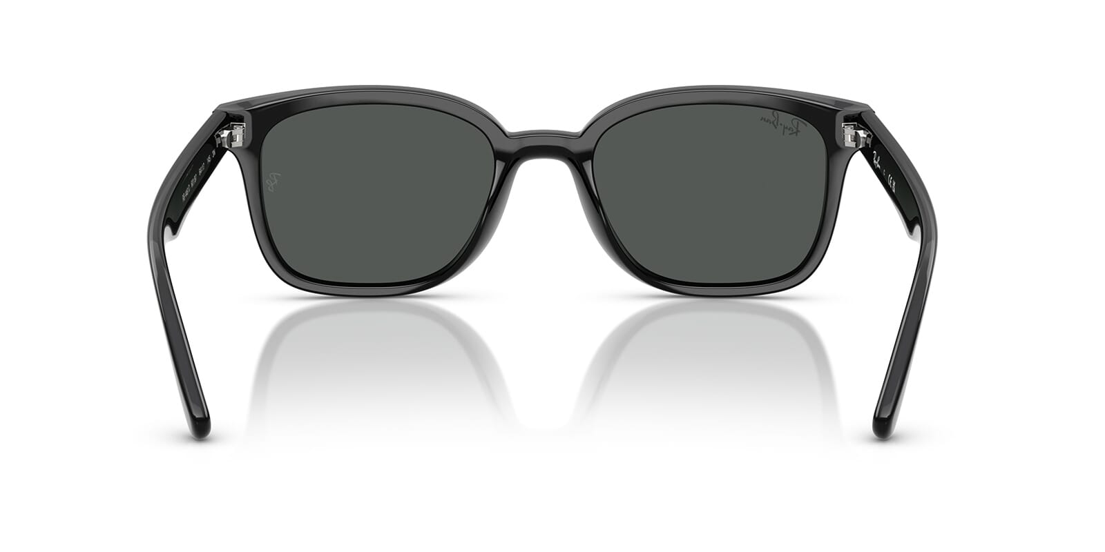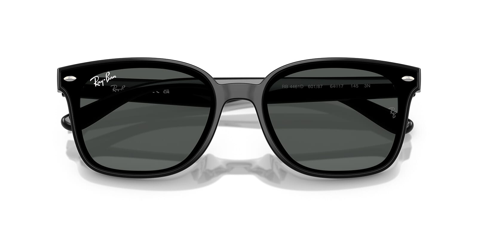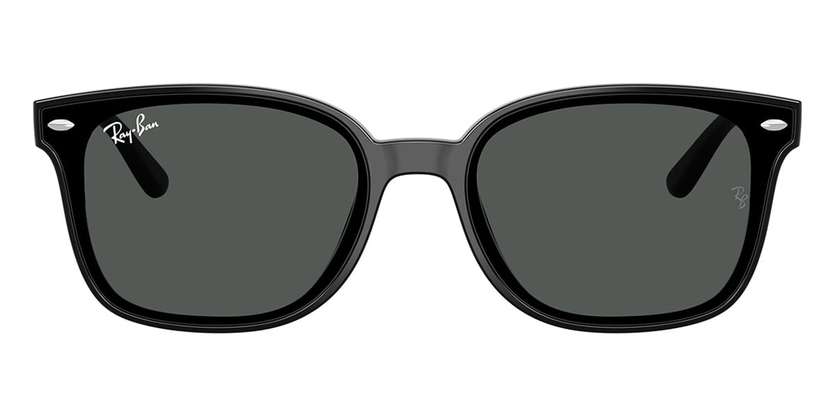 This rectangular Ray-Ban sunglass comes in a black frame with dark grey lenses.
