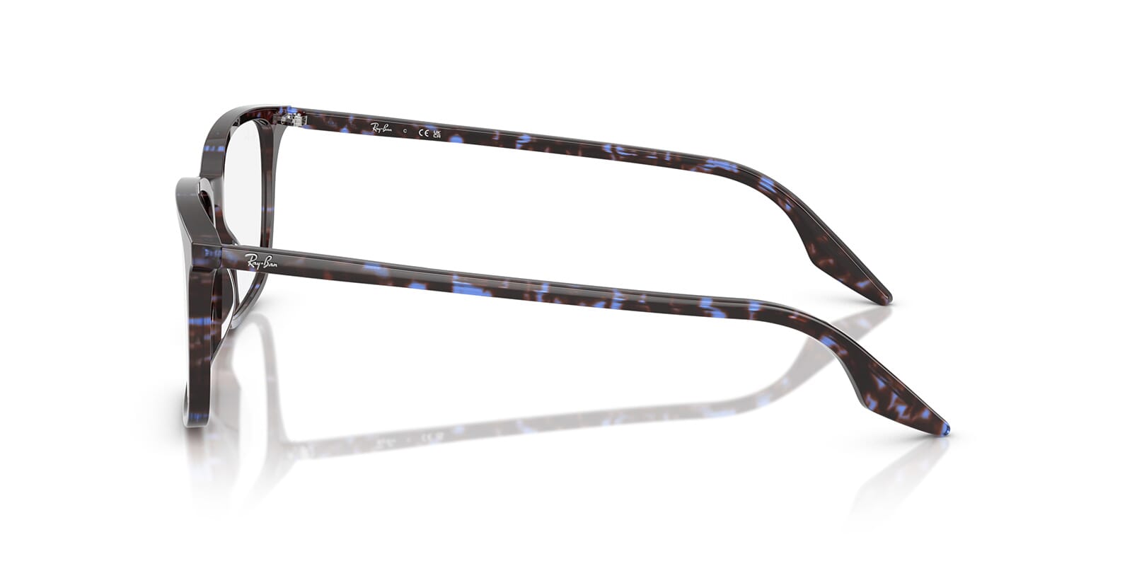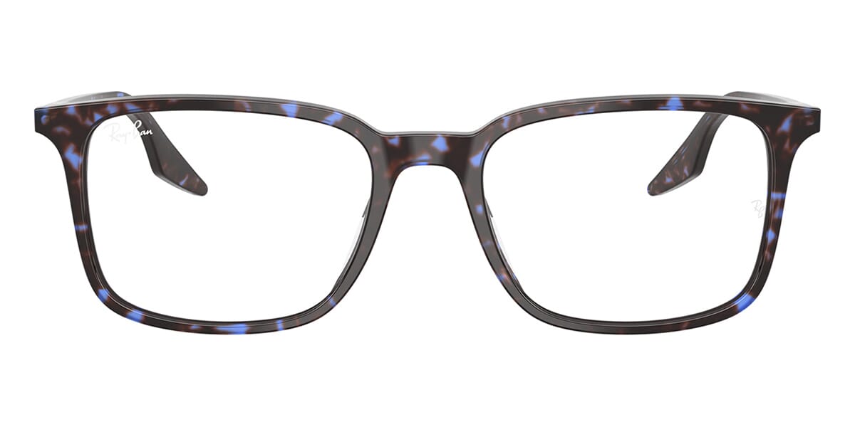 This rectangular Ray-Ban optical comes in a havana blue tortoiseshell frame.