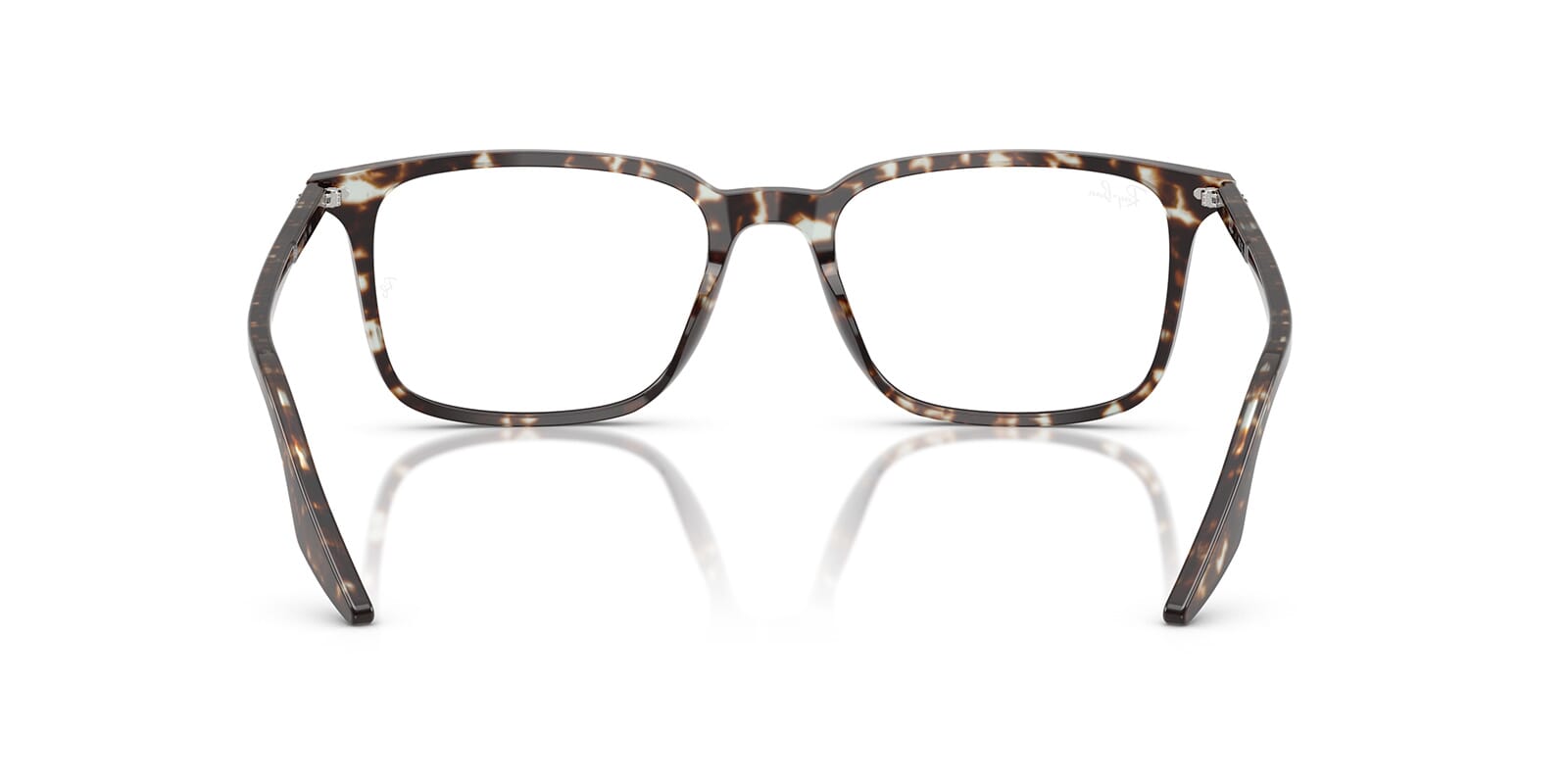This rectangular Ray-Ban optical comes in a havana yellow tortoiseshell frame.