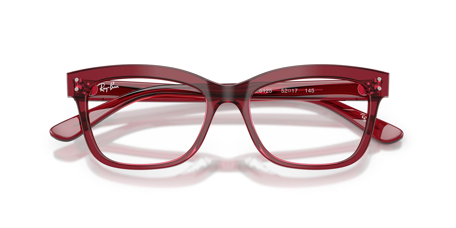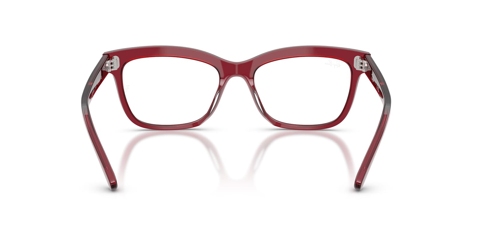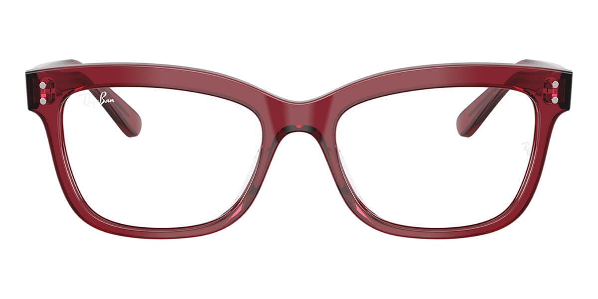 This square Ray-Ban optical comes in a burgundy crystal frame.