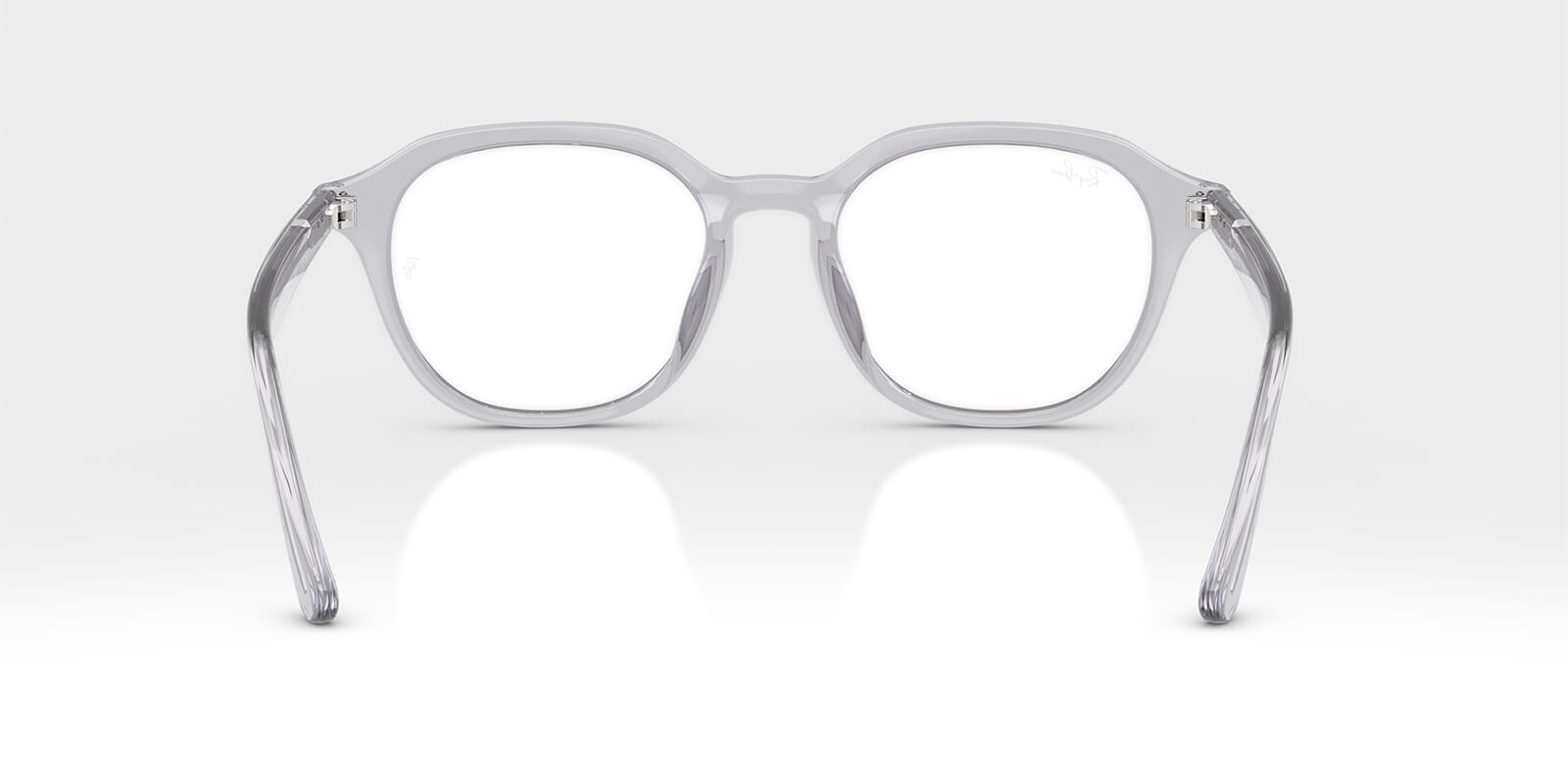 This square Ray-Ban optical comes in a light grey crystal frame.