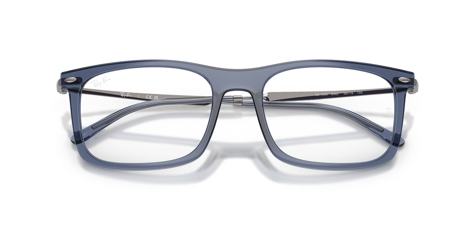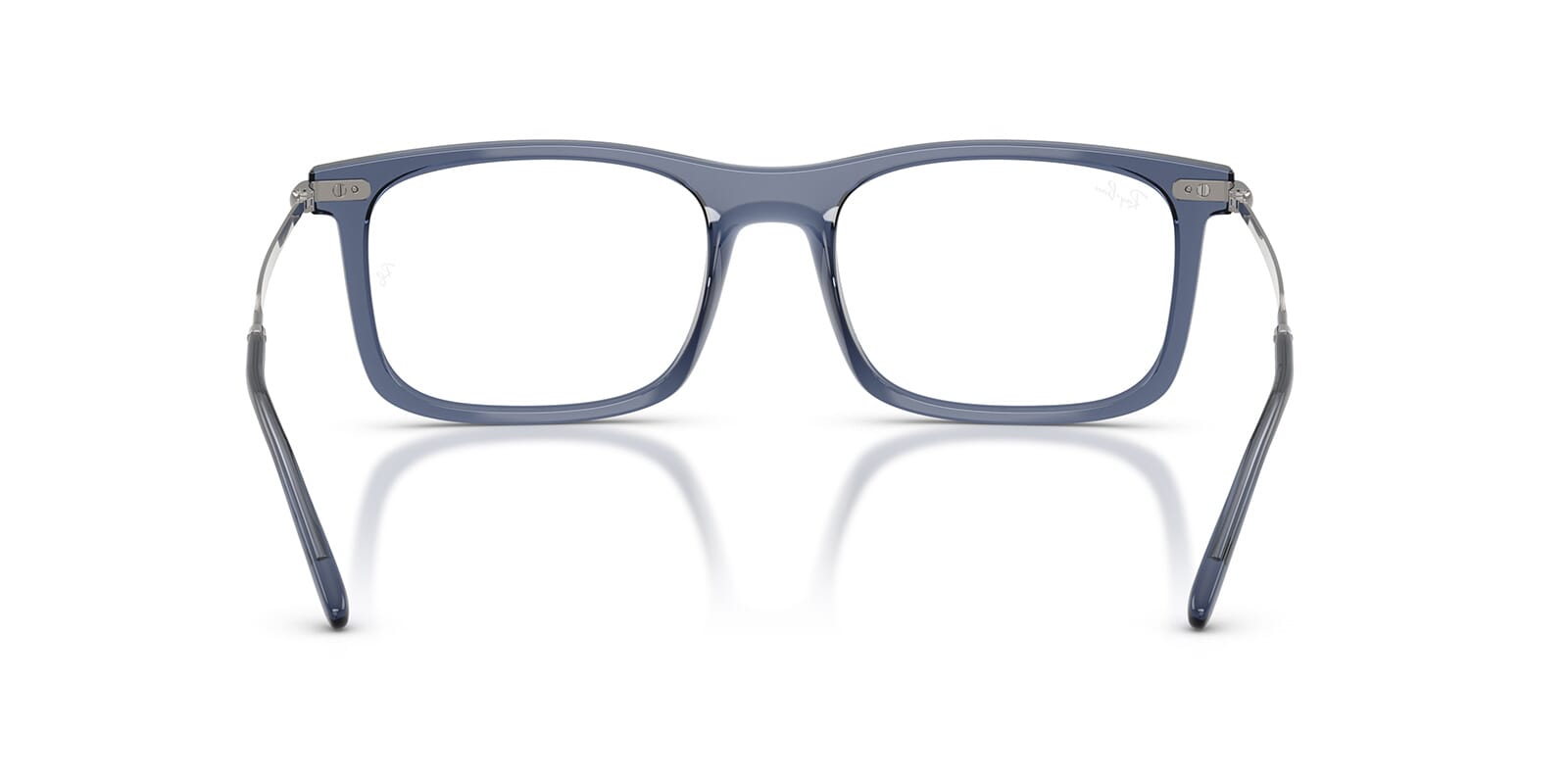 This rectangular Ray-Ban optical comes in a blue crystal frame.