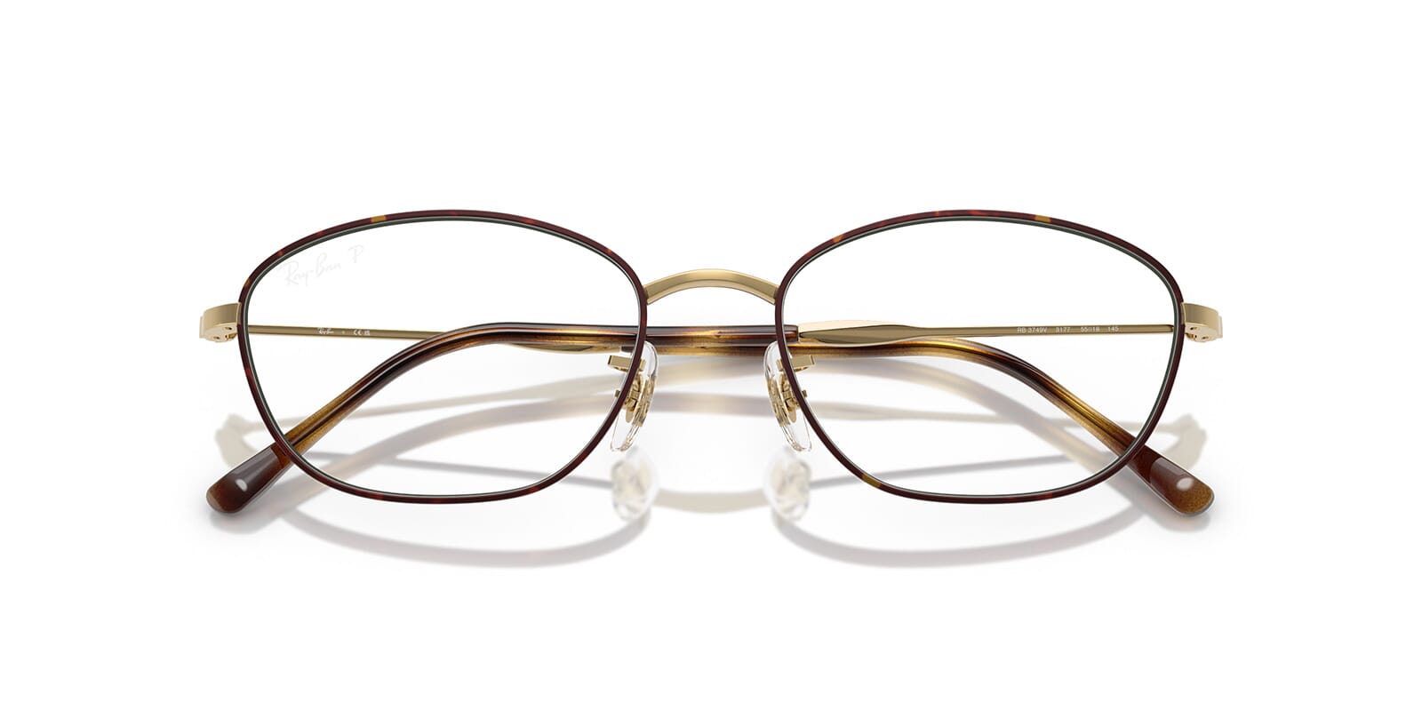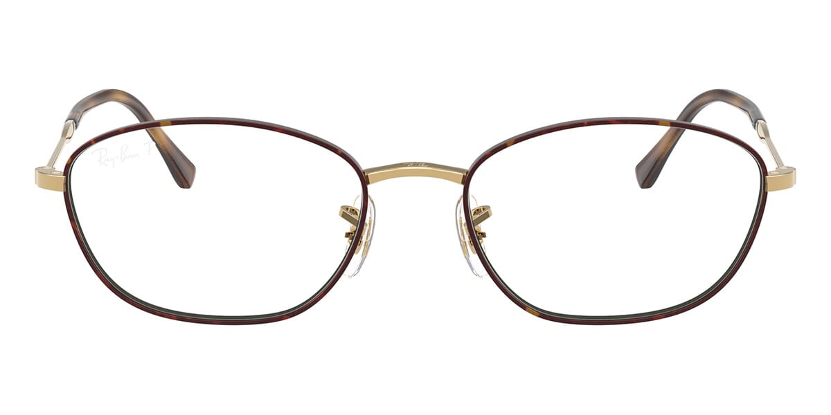 This rectangular Ray-Ban optical comes in a havana on gold frame.