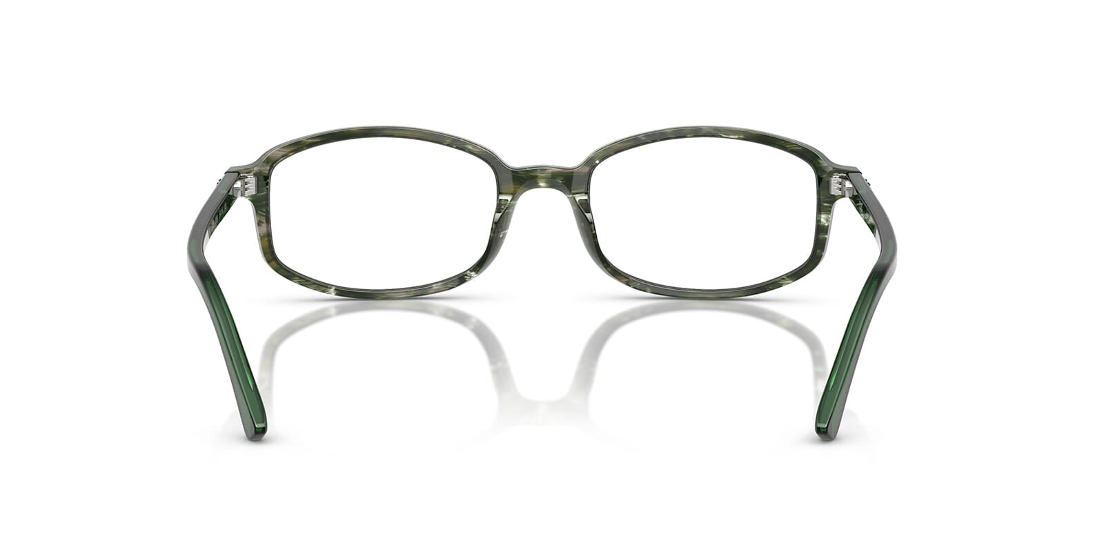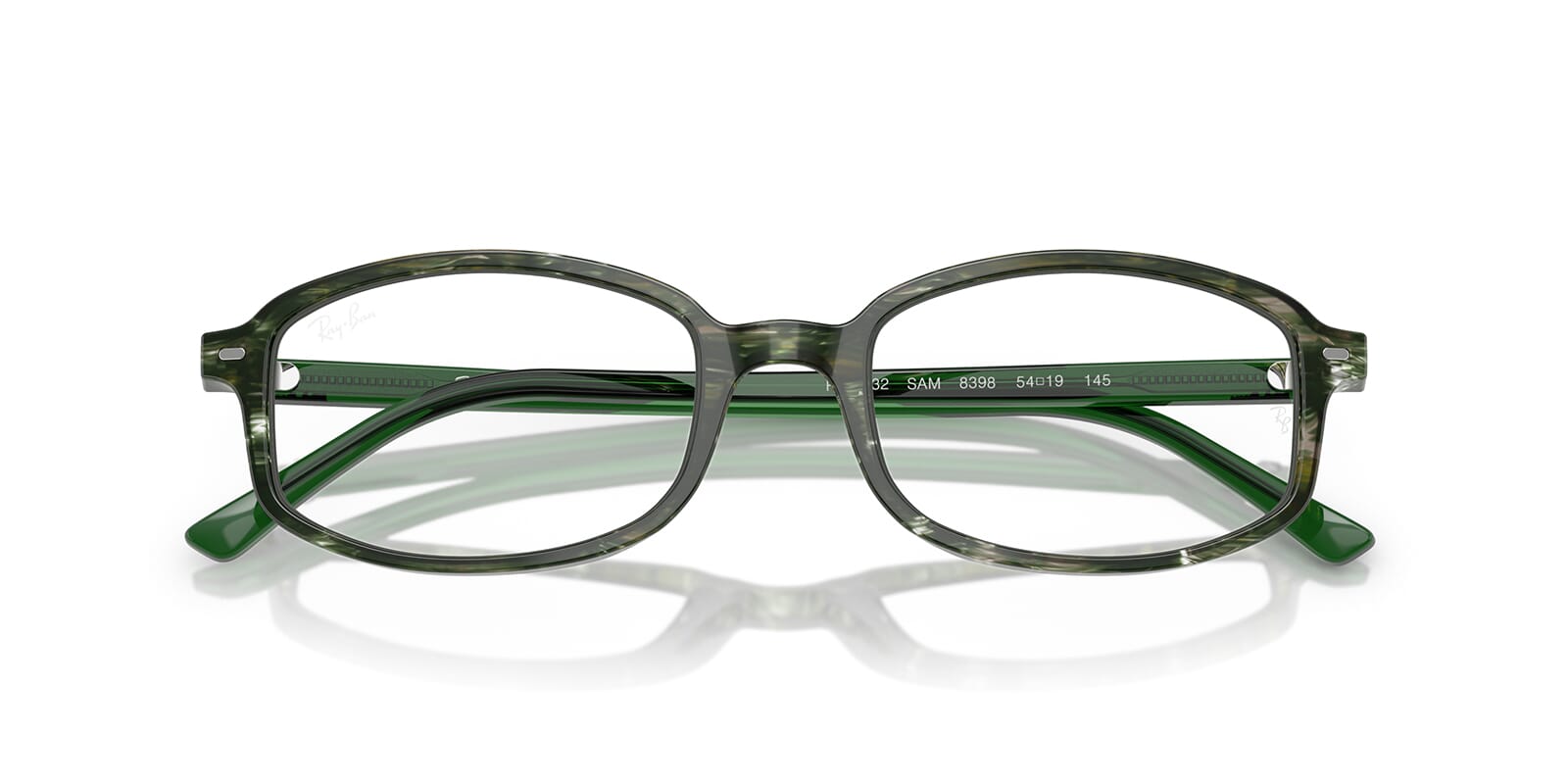This rectangular Ray-Ban optical comes in a transparent shade fantasy green frame.