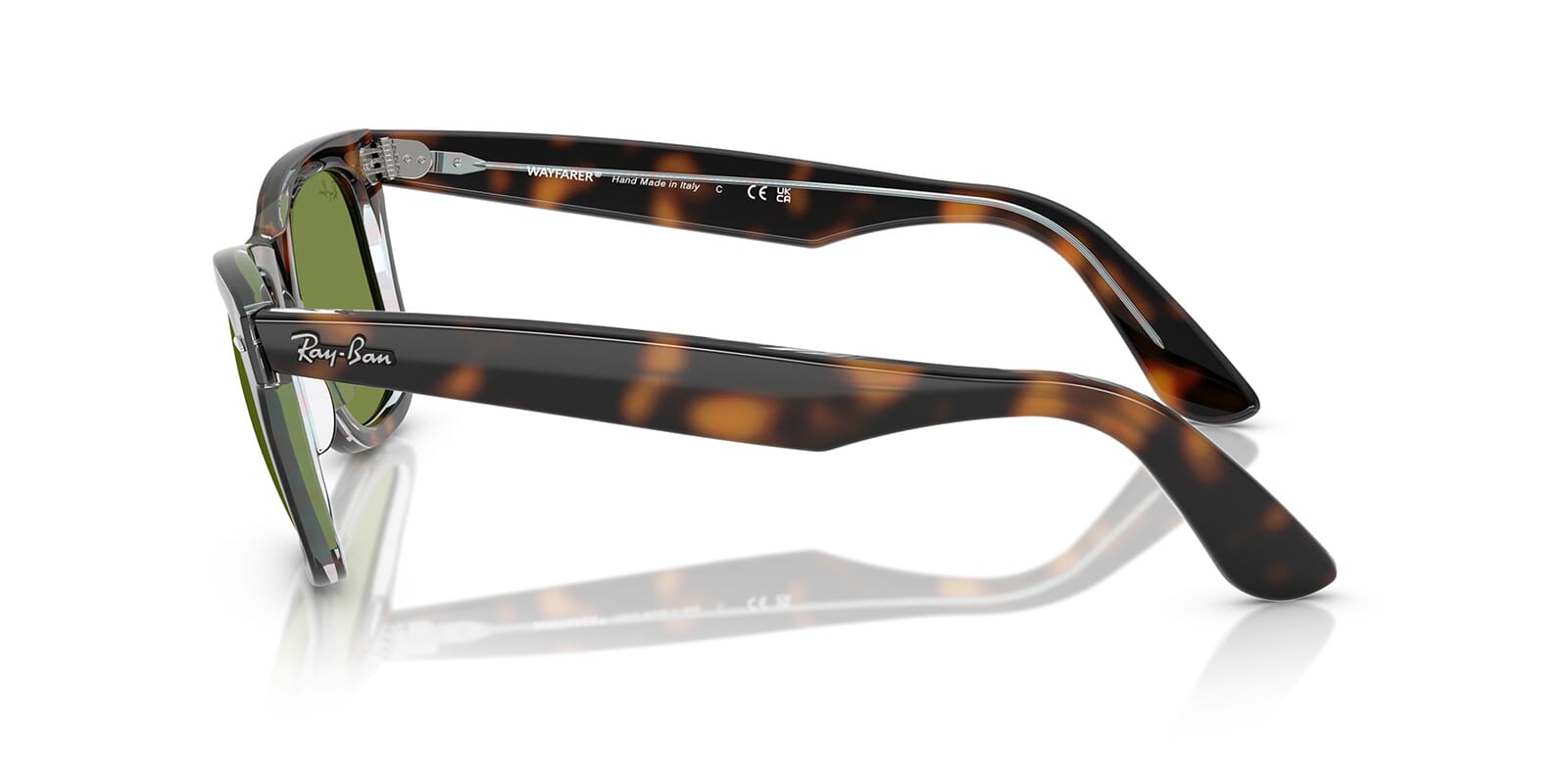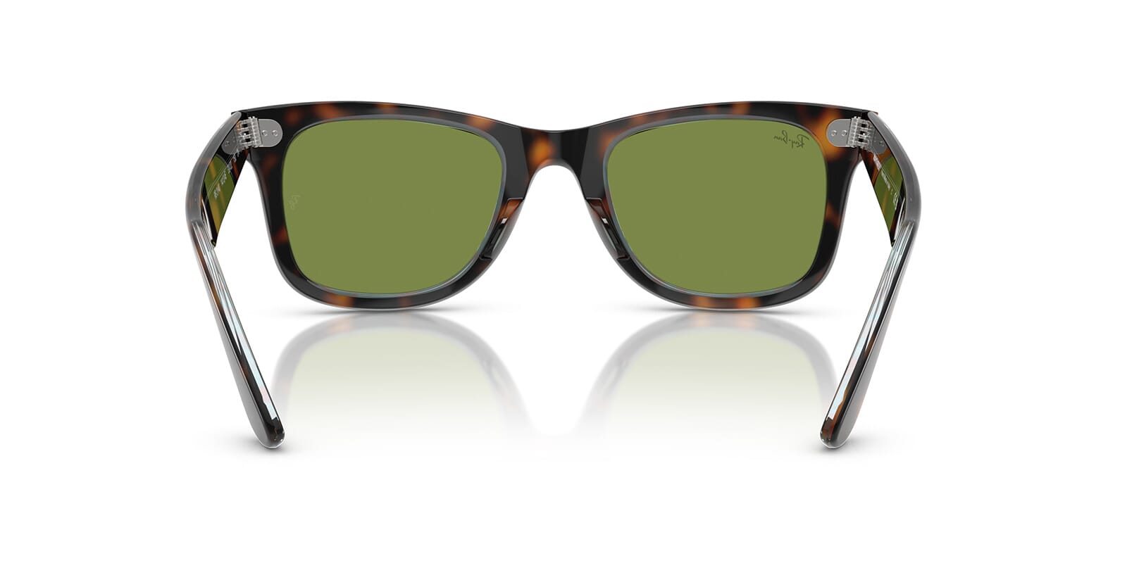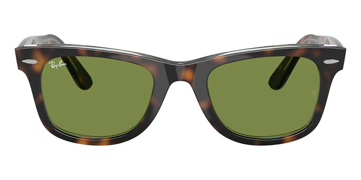This square Ray-Ban sunglass comes in a dark havana on multicolor frame with green lenses.