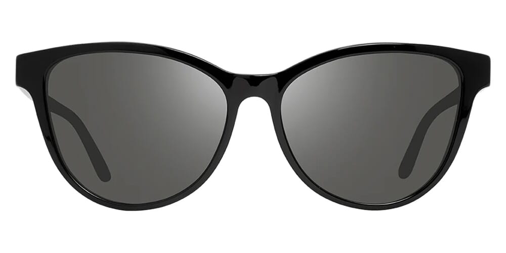 This cat eye Revo sunglass comes in a shiny black frame with grey with light mirror polarised lenses.