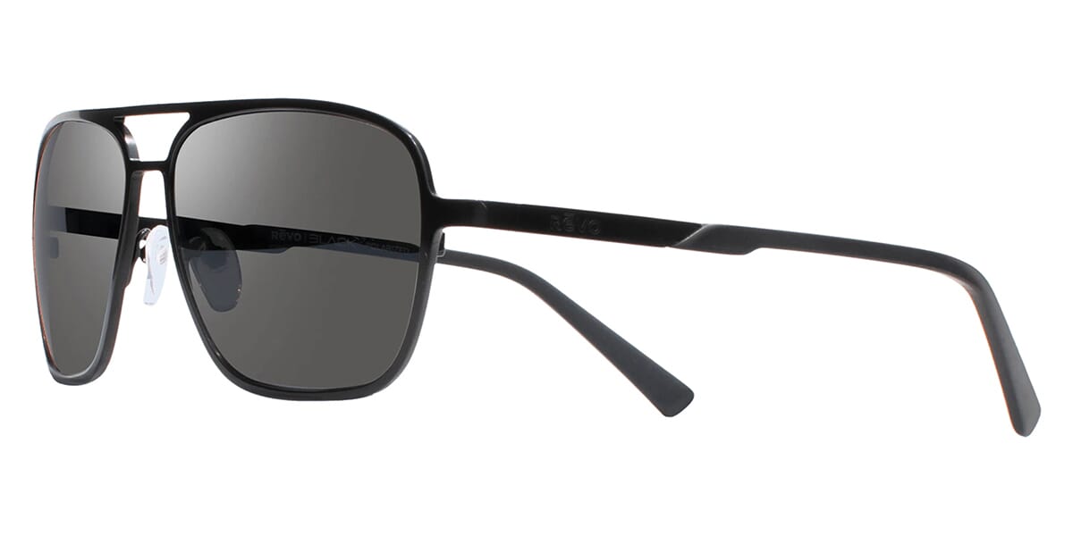 This square Revo sunglass comes in a satin black frame with graphite polarised lenses.