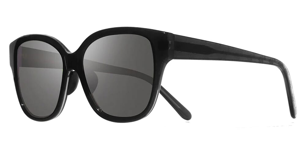 This square Revo sunglass comes in a shiny black frame with grey with light mirror polarised lenses.