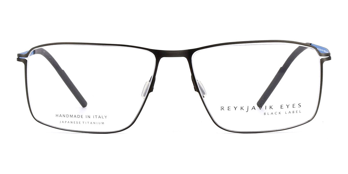 This square Reykjavik Eyes optical comes in a brushed gun metal grey with blue frame.