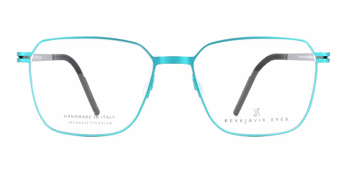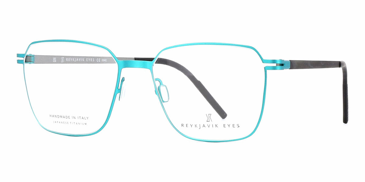 This square Reykjavik Eyes optical comes in a aqua blue with black frame.