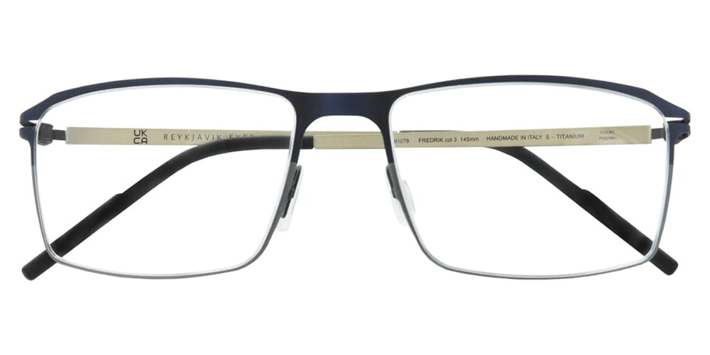 This square Reykjavik Eyes optical comes in a dark blue with gold frame.