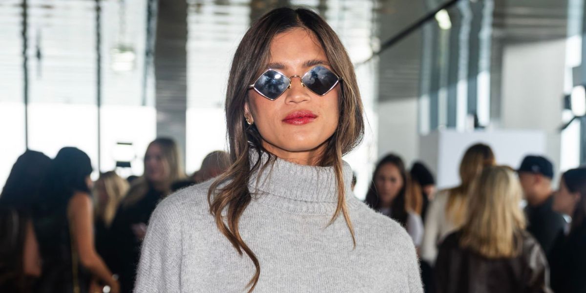 This cat eye Saint Laurent sunglass comes in a silver frame with grey lenses.