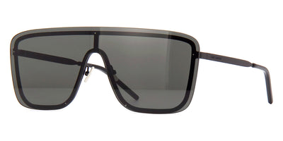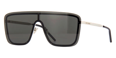 This shield Saint Laurent sunglass comes in a black frame with grey with silver mirror lenses.